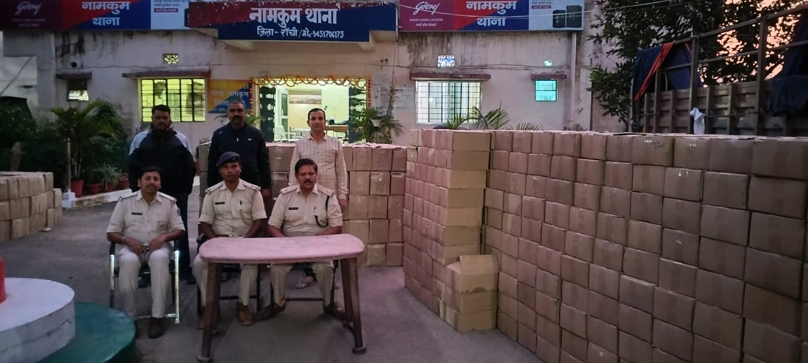 पुलिस से मिली जानकारी के अऩुसार रांची एसएसपी को गुप्त सूचना मिली कि जमशेदपुर की ओर से रांची की तरफ एक कन्टेनर ट्रक में अवैध शराब लोड कर लाया जा रहा है. सूचना पर नामकुम थाना प्रभारी के नेतृत्व में एक टीम का गठन कर त्वरित कार्रवाई करते हुए रांची-टाटा रोड में ग्राम सरजमडीह के पास कन्टेनर (WB23D 5344) को रूकने का इशारा किया गया. कंटेनर चालक सड़क के किनारे गाड़ी खड़ा कर जंगल की ओर भाग गया. कन्टेनर के पीछे गेट में सिल एवं ताला लगा था. जिसे नामकुम थाना लाया गया. और दंडाधिकारी के मौजूदगी में ताला तोड़ा गया. जहां से 1888 कार्टून विभिन्न ब्रांड के विदेशी शराब बरामद किया गया. छानबीन में कन्टेनर में अंकित नंबर भी फर्जी पाया गया.