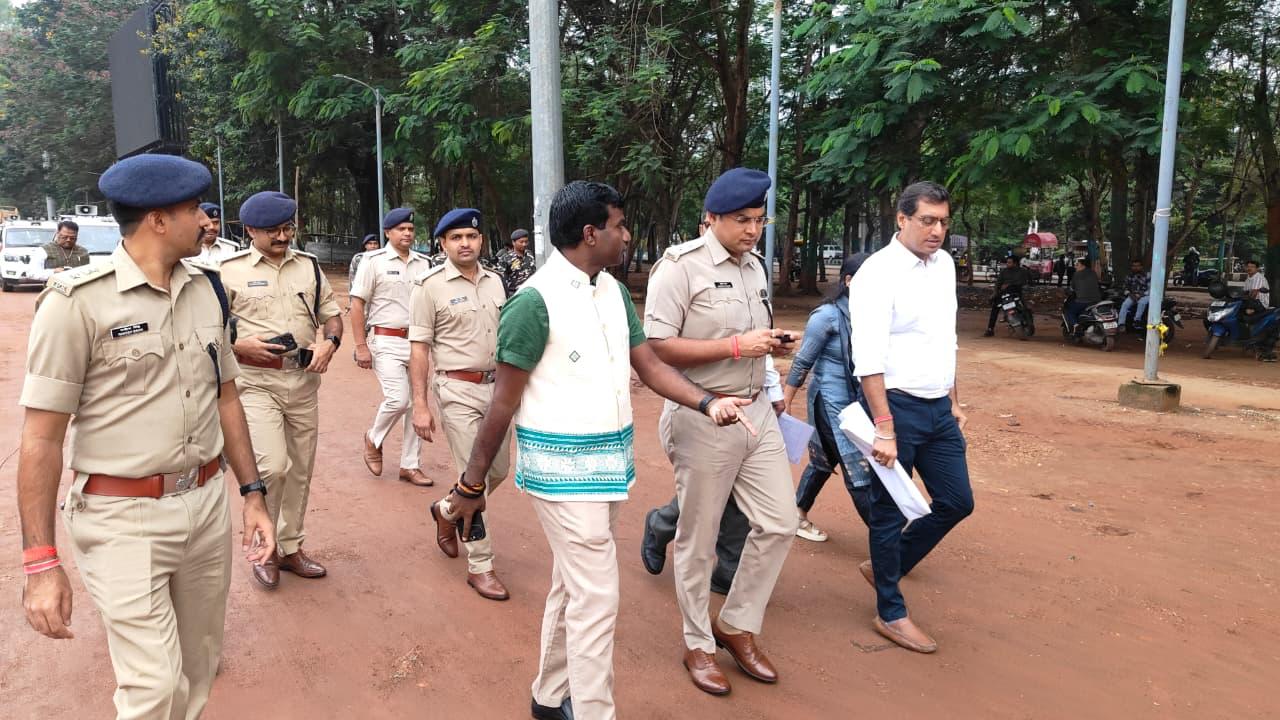 डीसी ने स्कार्यक्रम स्थल का विस्तृत निरीक्षण किया. निरीक्षण के दौरान उन्होंने कार्यक्रम के समय मंच निर्माण, बैठने की व्यवस्था, सुरक्षा घेराबंदी, प्रवेश-निकास द्वार, स्वागत कक्ष, मीडिया सेंटर, चिकित्सा व्यवस्था एवं अन्य सुविधाओं को लेकर कई महत्वपूर्ण निर्देश दिए गए.
