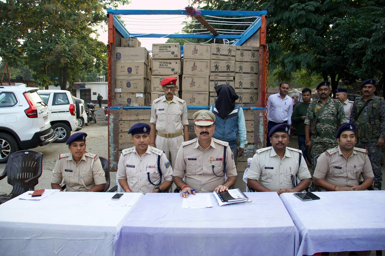 मामले की जानकारी देते हुए कोडरमा एसपी ने बताया बिहार विधान सभा चुनाव को को लेकर झारखण्ड-बिहार सीमा पर अवस्थित मेघातरी मिरर चेक पोस्ट पर सघन वाहन चेकिंग अभियान लगातार चलाया जा रहा है. इसी क्रम में दूसरे चरण का चुनाव प्रचार खत्म होने के पश्चात मेघातरी चेक पोस्ट पर अत्यधिक सतर्कता बरतते हुए सख्ती से वाहन चेकिंग का निर्देश दिया गया था. इसी क्रम में सोमवार गुप्त सूचना मिली एक ट्रक पर भारी मात्रा में अंग्रेजी शराब लोड कर मेघातरी चेक पोस्ट से होकर बिहार सीमा में प्रवेश करने वाला है. सूचना पर मेघातरी चेक पोस्ट पर प्रतिनियुक्त पदाधिकारी एवं बलों को पूरी सर्तकता एवं सख्ती से सभी प्रकार के वाहनों को चेक करने का निर्देश दिया गया. इसी बीच चेकिंग के दौरान एक संदिग्ध ट्रक (बीआर-56जी-4297) को रोका गया. तलाशी करने पर 279 पेटी अंग्रेजी शराब लोड पाया गया. इनमें इम्पेरियल ब्लू, रॉयल स्टेज, आईकॉनिक व्हाईट जैसी विदेशी शराब शामिल है. मौके पर ट्रक चालक शिशुरंजन उर्फ सोनु को गिरफ्तार किया गया तथा ट्रक एवं बरामद शराब को जप्त किया गया. इस संबंध में कोडरमा थाना में अवैध शराब तस्करी से संबंधित मामला दर्ज किया गया है.