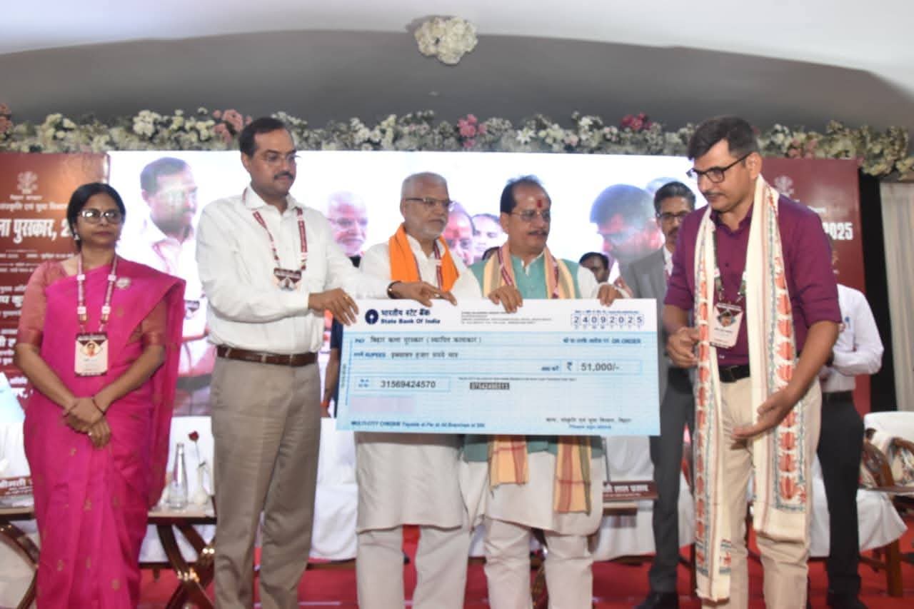- लाइफटाइम अचीवमेंट: चाक्षुष कला में शिवन पासवान, प्रदर्श कला में भरत शर्मा व्यास.
