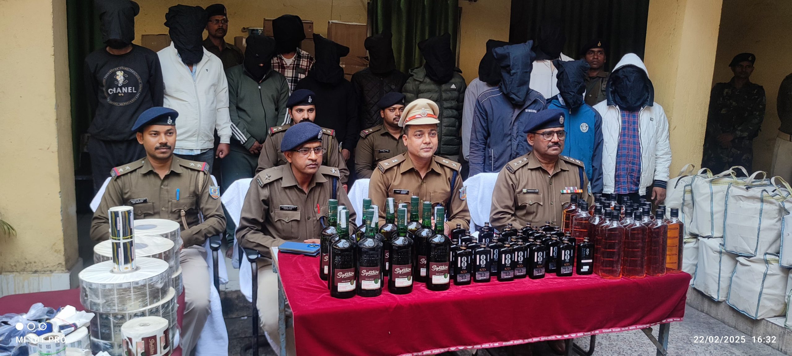 आरोपी के निशानदेही पर 240 पीस सिगनेचर, 192 पीस 8 पीएम, बिना रेपर लगा प्लास्टिक का 1260 बोतल शराब, 40 लीटर के जार में भरा हुआ स्प्रीट, ब्लैक हाइना लिखा हुआ रेपर 11 बंडल, क्लासिक प्रीमियम लिखा हुआ रेपर 1 बंडल, ब्लेंडर प्राइड लिखा हुआ रेपर 1 बंडल, सिगनेचर लिखा हुआ रेपर 1 बंडल, झारखण्ड सरकार का लोगो लगा हुआ रेपर 1 बंडल, ढक्कन पर सील करने वाला रेपर 5 बंडल, 2000 पीस अलग-अलग ब्रांड का खाली बोतल, 1900 पीस अलग-अलग ब्रांड का शराब का ढक्कन, 30 पीस 20 लीटर वाला पानी का खाली जार, 500-500 लीटर सिन्टेक्स पानी टंकी, दो महिन्दा एक्सयूवी कार, एक टाटा मैजिक माल वाहक वाहन, एक बुलेट, एक अपाची और 14 मोबाइल पुलिस ने बरामद किया है.