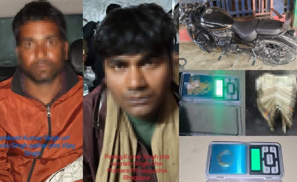 पुलिस से मिली जानकारी के अनुसार बीते शुक्रवार को बिहार एसटीएफ की विशेष टीम, दरभंगा एवं नवगछिया जिला पुलिस तथा कर्नाटक पुलिस की संयुक्त कार्रवाई में मैसूर के हुनसूर थाना क्षेत्र स्थित स्काई ज्वेलरी शॉप में हुए लूट कांड का सफल उद्भेदन करते हुए दोनो आरोपी को दरभंगा एवं भागलपुर जिले के विभिन्न थाना क्षेत्रों से छापेमारी कर नकद राशि एवं लूटे गए स्वर्ण आभूषणों के साथ गिरफ्तार किया गया. आरोपी 28 दिसंबर को मैसूर स्थित स्काई ज्वेलरी एवं डायमंड शॉप में लगभग 8.32 किग्रा स्वर्ण आभूषण की लूट की वारदात को अंजाम दिया था.