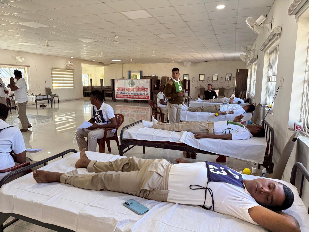 Ranchi: पुलिस मुख्यालय प्रशिक्षण निदेशालय के मार्गदर्शन एवं जंगल वॉरफेयर स्कूल के डीआईजी के नेतृत्व में जंगल वॉरफेयर स्कूल नेतरहाट कैंपस में रक्तदान शिविर का सफल आयोजन किया गया. इस शिविर में 240 यूनिट रक्त दान किया गया. जिसमें मुख्य रूप से एसएलसी प्रशिक्षणार्थियों, जेडब्लूएफएस, सीआईएटी एवं आईआरबी-4 के पुलिस अधिकारियों एवं कर्मियों ने उत्साहपूर्वक भाग लिया. रक्तदान शिविर के सफल आयोजन में सभी कर्मियों की सक्रिय भागीदारी सराहनीय रही. यह रक्तदान शिविर समाज के प्रति पुलिस बल की प्रतिबद्धता तथा मानवीय संवेदनाओं को मजबूत करने की दिशा में एक महत्वपूर्ण कदम है. डीआईजी ने इस पहल की सराहना करते हुए कहा कि रक्तदान एक महादान है, जो किसी जरूरतमंद को एक नया जीवन दे सकता है. साथ ही उन्होंने सभी रक्तदाताओं का आभार व्यक्त करते हुए रांची सदर अस्पताल एवं लातेहार की मेडिकल टीम का उनके सहयोग, विशेषज्ञता एवं समर्पण के लिए हृदय से धन्यवाद किया.