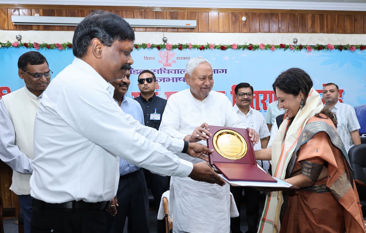 Patna: मुख्यमंत्री नीतीश कुमार शनिवार को मुख्यमंत्री सचिवालय स्थित ‘संवाद’ में मंत्रिमंडल सचिवालय विभाग अन्तर्गत राजभाषा के द्वारा आयोजित हिन्दी सेवी सम्मान पुरस्कार (2023-24) वितरण समारोह का उद्घाटन किया. कार्यक्रम के दौरान मुख्यमंत्री ने हिन्दी सेवी सम्मान एवं पुरस्कार के अधीन विभिन्न श्रेणियों के लिये अखिल भारतीय स्तर पर चयनित तथा इस समारोह में उपस्थित 12 साहित्यकारों, संस्थाओं को पुरस्कृत किया. इसके अन्तर्गत अनुसूचित जातियों एवं अनुसूचित जनजातियों की शिक्षा-दीक्षा तथा उनके सामाजिक एवं आर्थिक विकास में विशिष्ट योगदान के लिये जियालाल आर्य को बाबा साहब अम्बेदकर पुरस्कार प्रदान किया. इसके अन्तर्गत उन्हें अंग वस्त्र, प्रतीक चिन्ह एवं 5 लाख रूपये की पुरस्कार की राशि प्रदान की गयी. सृजनात्मक लेखन के माध्यम से सामाजिक समरसता को निरूपित करने में विशिष्ट योगदान के लिये डॉ० शिव नारायण को बी०पी० मंडल पुरस्कार प्रदान किया गया. इसके अन्तर्गत उन्हें अंग वस्त्र, प्रतीक चिन्ह एवं 4 लाख रूपये की पुरस्कार की राशि प्रदान की गयी. उपन्यास, कविता, आलोचना आदि में विशिष्ट योगदान के लिये डॉ० महेन्द्र मधुकर को नागार्जुन पुरस्कार प्रदान किया गया. इसके अन्तर्गत उन्हें अंग वस्त्र, प्रतीक चिन्ह एवं 4 लाख रूपये की पुरस्कार की राशि प्रदान की गयी. आंचलिक कथा लेखन के क्षेत्र में विशिष्ट योगदान के लिये हृषीकेश सुलभ को फणीश्वरनाथ रेणु पुरस्कार प्रदान किया गया. इसके अन्तर्गत उन्हें अंग वस्त्र, प्रतीक चिन्ह एवं 4 लाख रूपये की पुरस्कार की राशि प्रदान की गयी.
