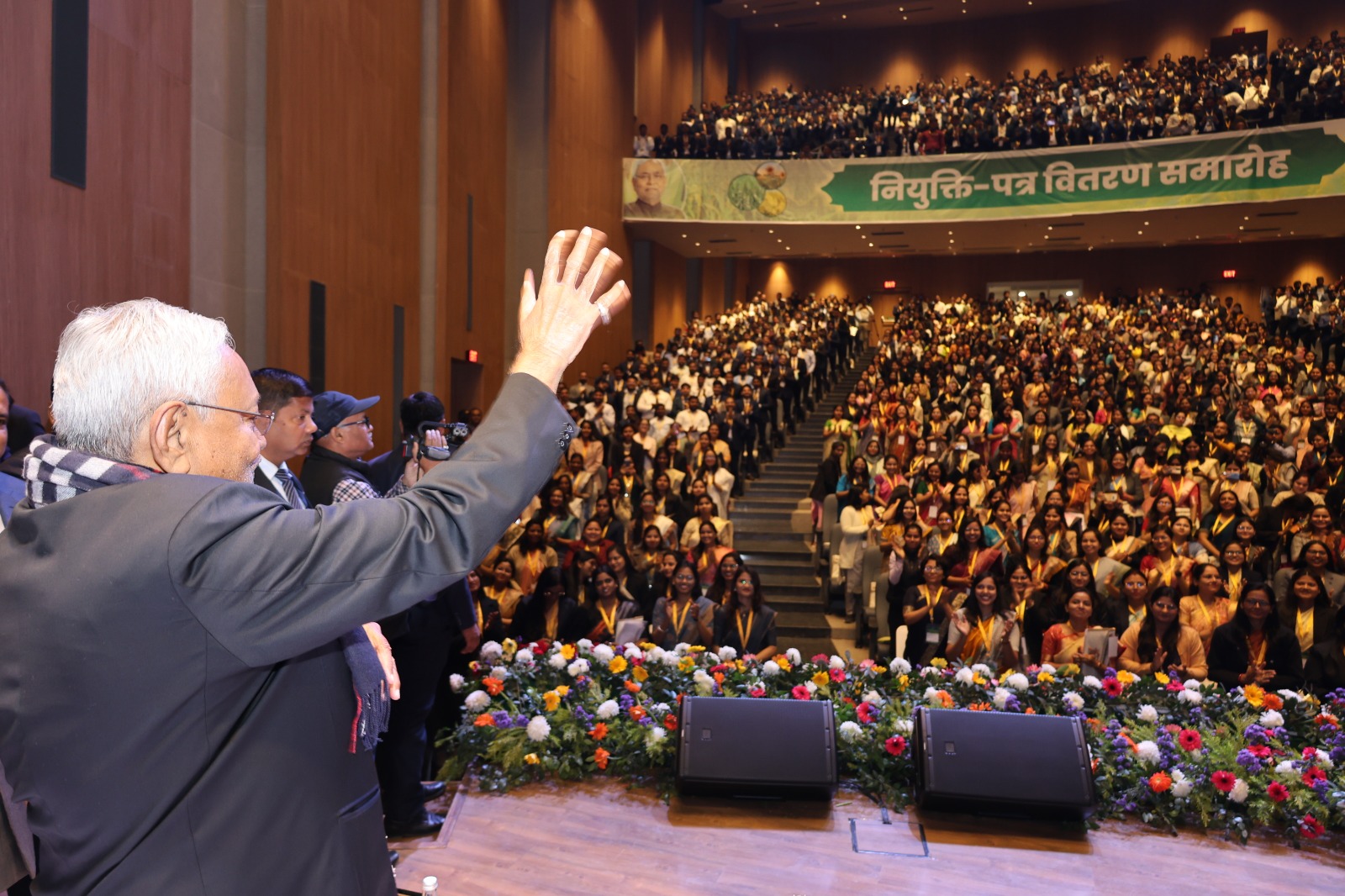 Patna: मुख्यमंत्री नीतीश कुमार शनिवार को राजधानी पटना के ऊर्जा ऑडिटोरियम में दीप प्रज्जवलित कर कृषि विभाग द्वारा आयोजित नियुक्ति पत्र वितरण कार्यक्रम का शुभारंभ किया. इस अवसर पर मुख्यमंत्री ने अभ्यर्थियों को नियुक्ति पत्र प्रदान किया. कार्यक्रम में 154 अनुमंडल कृषि पदाधिकारी, सहायक निदेशक (शष्य) एवं समकक्ष स्तर के राजपत्रित पदाधिकारियों तथा 853 प्रखंड कृषि पदाधिकारी एवं समकक्ष स्तर के पदाधिकारियों सहित 1007 अभ्यर्थियों को नियुक्ति पत्र प्रदान किया गया. आज जिन 1007 पदाधिकारियों को नियुक्ति पत्र वितरण किया गया है उनमें 397 महिला पदाधिकारी है.
