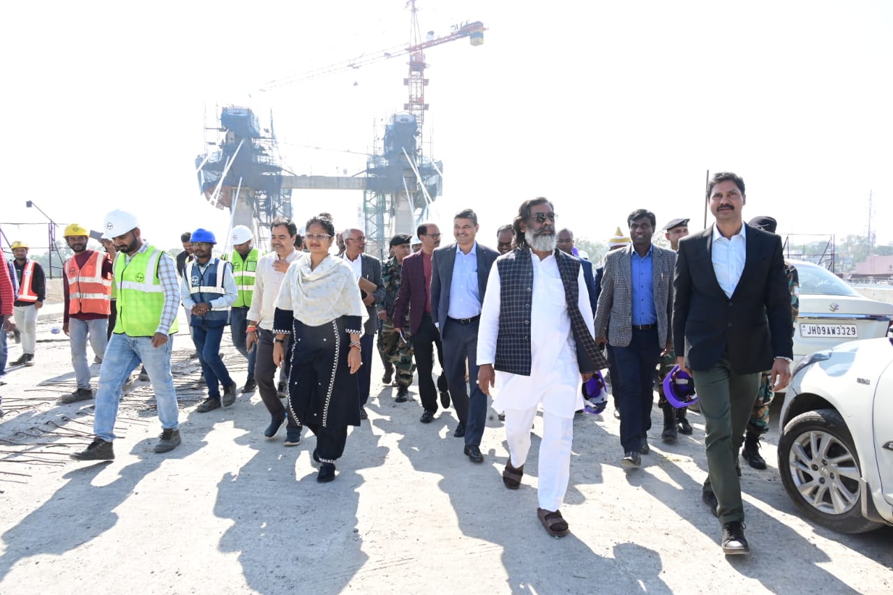 Ranchi: मुख्यमंत्री हेमन्त सोरेन मंगलवार को राजधानी रांची में मेकॉन चौक से सिरमटोली चौक तक बन रहे निर्माणाधीन फ्लाईओवर का औचक निरीक्षण किया. मौके पर विधायक कल्पना सोरेन एवं राज्य सरकार के वरीय अधिकारी भी मौजूद रहे. निरीक्षण के दौरान मुख्यमंत्री ने फ्लाईओवर के निर्माण कार्य की प्रगति का जायजा लिया और संबंधित अधिकारियों से फ्लाईओवर की विभिन्न पहलुओं पर चर्चा की. मुख्यमंत्री ने अधिकारियों को निर्देशित किया कि वे इस फ्लाईओवर निर्माण कार्य की गुणवत्ता और समय सीमा पर विशेष ध्यान दें. फ्लाईओवर निरीक्षण के उपरांत मुख्यमंत्री मीडिया को संबोधित करते हुए कहा कि पूर्व में भी राज्य सरकार द्वारा कांटाटोली से सिरमटोली चौक तक बने फ्लाईओवर परियोजना को निर्धारित समय सीमा से पहले ही राजधानी वासियों को समर्पित किया जा चुका है. मेकॉन चौक से सिरमटोली चौक तक बन रहे यह फ्लाईओवर भी निर्धारित समय सीमा से पहले ही रांची वासियों को समर्पित की जा सके इस निमित्त राज्य सरकार के पदाधिकारी, इंजीनियर एवं फ्लाईओवर निर्माण में लगे श्रमिक पूरी मेहनत और लगन के साथ अपने-अपने कार्य में जुटे हैं. मुख्यमंत्री ने कहा कि हमारा प्रयास है कि इस फ्लाईओवर परियोजना का भी जल्द से जल्द शुभारम्भ हो, ताकि लोगों को ट्रैफिक की समस्या से निजात मिल सके. मुख्यमंत्री ने कहा कि यह फ्लाईओवर चूंकि रेलवे क्रॉसिंग के ऊपर से गुजर रहा है इसीलिए रेल गाड़ियों के आवागमन से संबंधित बिंदुओं का भी ध्यान रखा जा रहा है. मुख्यमंत्री ने कहा कि इस फ्लाईओवर का देश और राज्य में एक अलग पहचान होगा. यह फ्लाईओवर अपने आप में एक अनोखा फ्लाईओवर होगा.