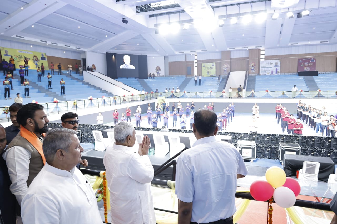 Patna : मुख्यंमत्री नीतीश कुमार शुक्रवार को नालंदा जिला के राजगीर में राजगीर खेल अकादमी-सह-खेल विश्वविद्यालय में नवनिर्मित खेल सुविधाओं का लोकार्पण किया. इसके तहत मुख्यमंत्री ने राजगीर खेल अकादमी-सह-खेल विश्वविद्यालय में निर्मित इंडोर हॉल संख्या-2, बास्केटबॉल कोर्ट, हँडबॉल कोर्ट, वॉलीबॉल कोर्ट एवं हॉकी प्रैक्टिस टर्फ का शिलापट्ट अनावरण एवं फीता काटकर लोकार्पण किया. लोकार्पण के पश्चात् मुख्यमंत्री ने इंडोर हॉल संख्या-2, बास्केटबॉल कोर्ट, हैंडबॉल कोर्ट, वॉलीबॉल कोर्ट एवं हॉकी प्रैक्टिस टर्फ का जायजा लिया. और इस अवसर पर गुब्बारा भी उड़ाया. निरीक्षण के दौरान वहां उपस्थित खिलाड़ियों ने मुख्यमंत्री का ताली बजाकर स्वागत किया. मुख्यमंत्री ने खिलाड़ियों से बातचीत कर उनका उत्साहवर्द्धन किया और कहा कि खूब बढ़िया से प्रैक्टिस करें और आगे बढ़ें. उन्होंने वहां संचालित ब्वॉयज और गर्ल्स हॉस्टल में दी जा रही सुविधाओं की भी जानकारी ली. साथ ही राज्य खेल अकादमी में खिलाड़ियों को उपलब्ध सुविधाओं के बारे में भी जाना.