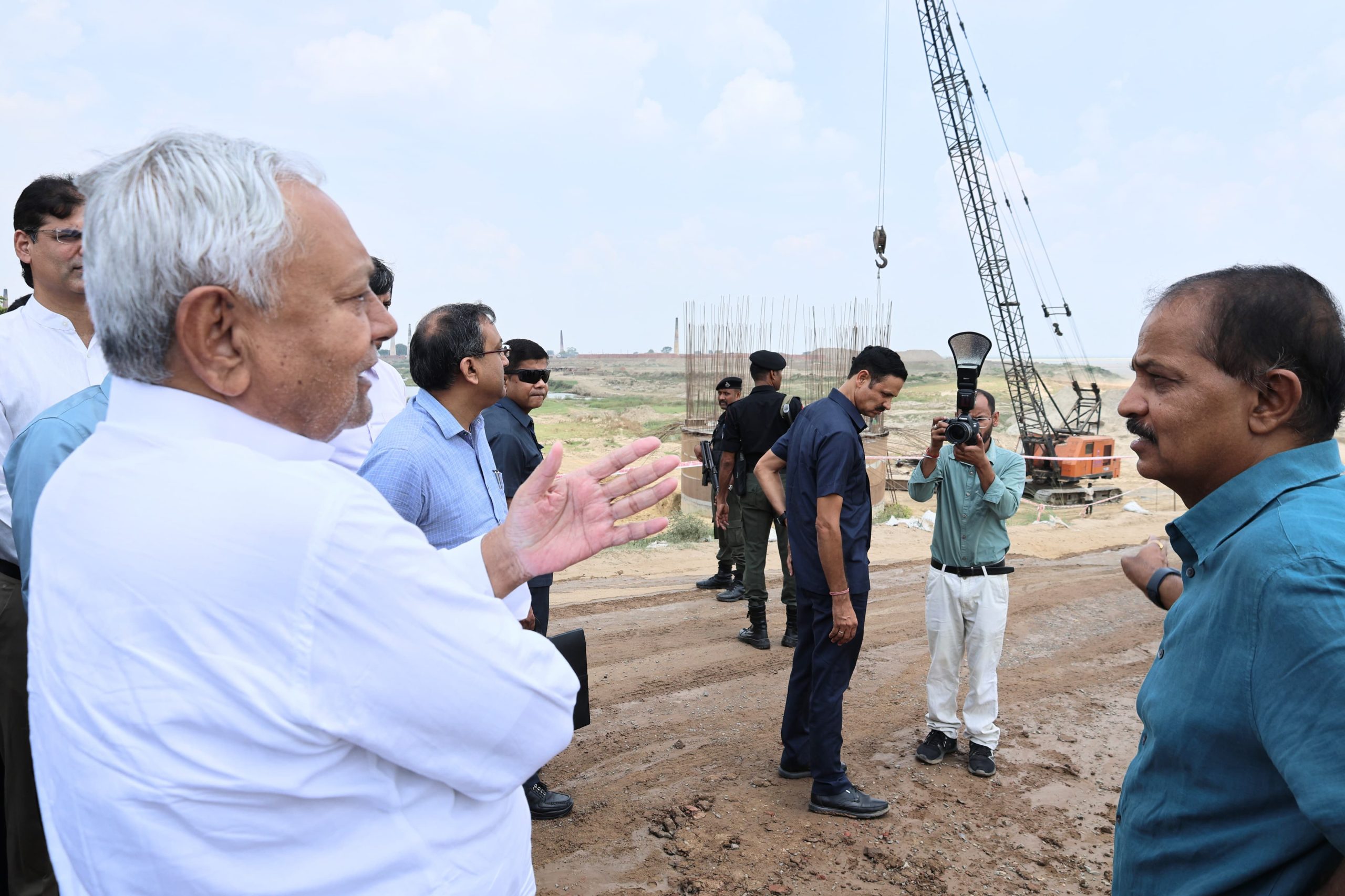 Patna: : मुख्यमंत्री नीतीश कुमार बुधवार को निर्माणाधीन 6 लेन शेरपुर-दिघवारा गंगा पुल का निरीक्षण किया. इस दौरान उन्होंने शेरपुर में स्थल निरीक्षण कर निर्माण कार्य के बारे में जानकारी ली. मुख्यमंत्री ने गंगा नदी में चल रहे पुल निर्माण कार्य का भी स्थल पर जाकर जायजा लिया. निरीक्षण के दौरान अधिकारियों ने मुख्यमंत्री को बताया कि नेशनल हाई-वे ऑथरिटी ऑफ इंडिया (एनएचएआई) द्वारा गंगा नदी पर 3200 करोड़ रूपये की लागत से 6 लेन गंगा पुल का निर्माण कराया जा रहा है. यह पुल पटना जिला के शेरपुर से सारण जिला के दिघवारा तक जाता है. इस पुल की लम्बाई 14.52 किलोमीटर है. यह पुल पटना शहर के रिंग रोड के रूप में भी कार्य करेगा.