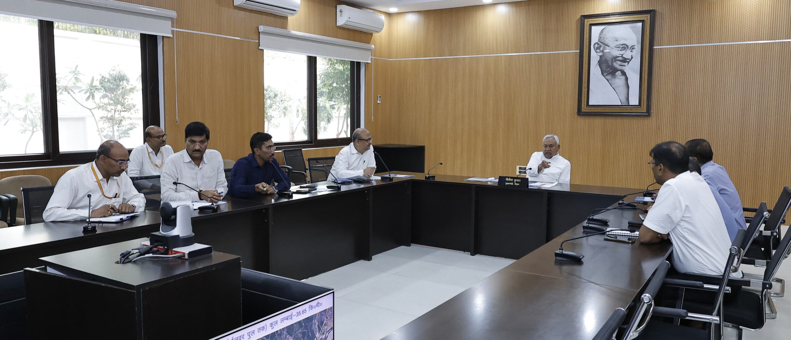 Patna: मुख्यमंत्री नीतीश कुमार सोमवार को ने1 अणे मार्ग स्थित ‘संकल्प’ में पथ निर्माण विभाग की विभिन्न योजनाओं की समीक्षा की और अधिकारियों को आवश्यक निर्देश दिये.