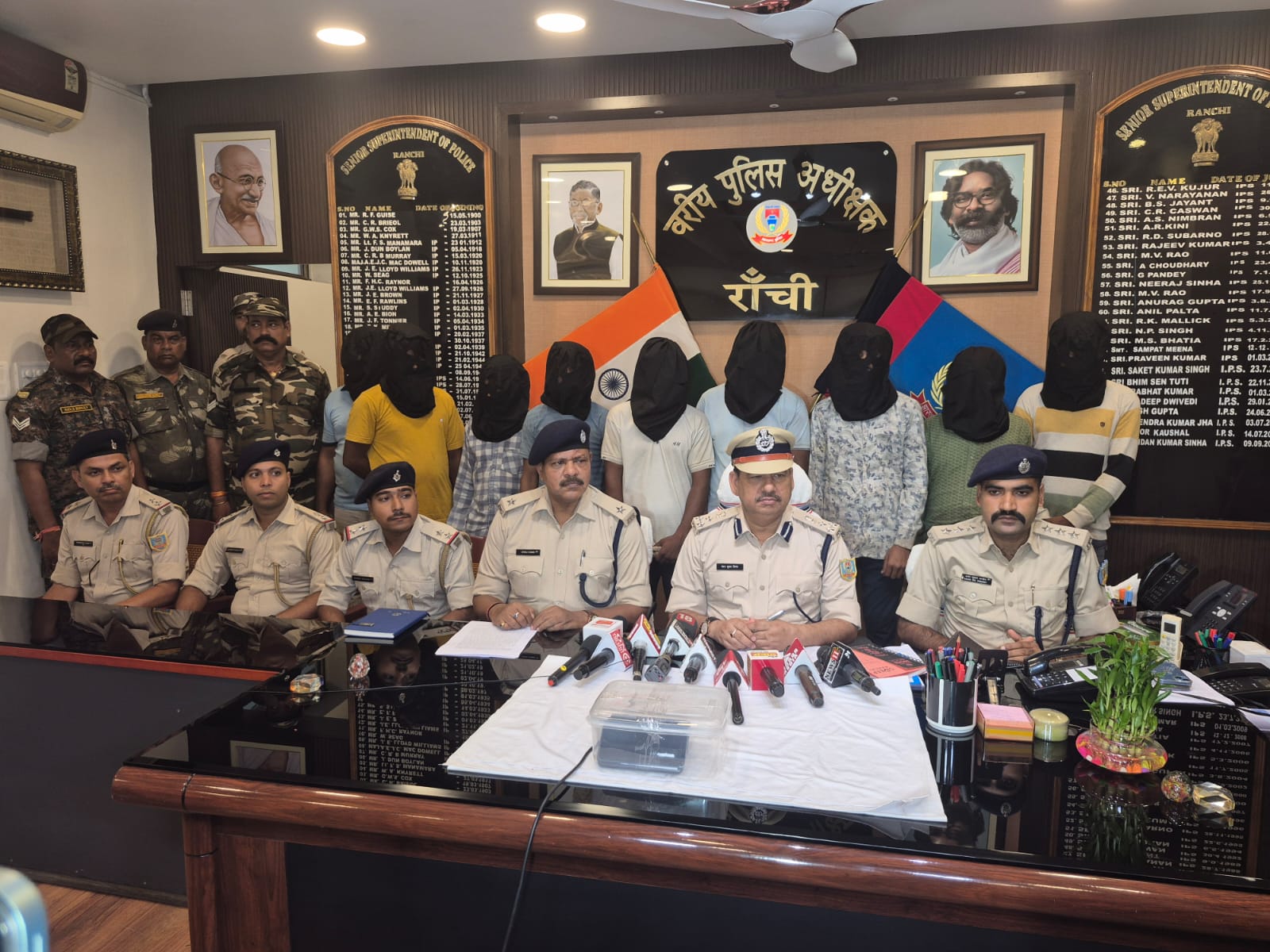 गिरफ्तार आरोपी में रांची के डोरंडा थाना क्षेत्र के बड़ा घाघरा के रहने वाले दिनेश लोहरा उर्फ दिनेश करमाली, जगरनाथपुर थाना क्षेत्र के आइएसएम चौक के रहने वाले फुरकान मल्लिक उर्फ फुरकान, लवातुटोला के रहने वाले दीपक कुमार सोनी, हजारीबाग जिले के उरीमारी थाना क्षेत्र के राजेश कुमार सिंह उर्फ भोला, रामगढ़ जिले के भुरकुंडा ओपी के महुआटोली निवासी शाहिद अंसारी उर्फ जटला, वीरेंद्र बेदिया, टोंगरी टोला निवासी ललन कुमार भुईया उर्फ बौना, बोतल मोड नियर लक्ष्मी टॉकिज निवासी जितु कुमार सिंह उर्फ जिजुवा उर्फ जीतु और बिहार के पटना जिले के बिहटा थाना क्षेत्र के परेव निवासी जितेन्द्र कुमार का नाम शामिल है. आरोपी के निशानदेही पर घटना में प्रयुक्त टेम्पु (JH01-FS-7047), डकैती में लूटे लूटे समान, कटर मशीन, कॉपर स्ट्रीप, प्लेट एंगल, कनेक्टर, 9 मोबाईल समेत अन्य समान पुलिस ने बरामद किया है.