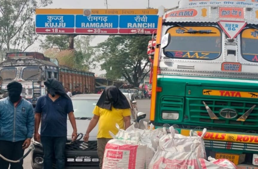 Ranchi: रांची-पटना मार्ग पर स्थित चरही में सड़क किनारे खड़ा 14 चक्का ट्रक में लोड स्पंज आयरन के बीच में छिपाकर रखा डोडा पुलिस ने बरामद किया है. वही तीन तस्कर को भी गिरफ्तार किया गया है. गिरफ्तार आरोपी में चरही थाना क्षेत्र के इन्दरा निवासी असगर अली, बोकारो जिले के महुआटांढ़ थाना क्षेत्र के कंडेर निवासी दानिश रजा और पंजाब के गुरुदासपुर जिले के जोड़ासतरा निवासी हरविन्दर सिंह का नाम शामिल है. मौके पर से 14 चक्का ट्रक (B06BE-6786), बोलेनो कार (JH01FM-2658), 200.1 किग्रा डोडा, 3 मोबाईल और 30 टन स्पंज आयरन पुलिस ने बरामद किया है. पुलिस के अनुसार हजारीबाग एसपी को गुप्त सूचना मिली कि राँची तरफ से एक 14 चक्का ट्रक (PB06BE-6786) से डोडा की तस्करी के उद्देश्य से कुछ लोग हजारीबाग आ रहे है. सूचना पर विष्णुगढ़ एसडीपीओ के नेतृत्व में छापामारी टीम का गठन किया गया. छापामारी टीम मौके पर पहुंची तो 15 माईल चरही के राँची-पटना मार्ग पर ट्रक एवं उसके बगल में बोलेनो कार (JH01FM-2658) सड़क किनारे खड़ा दिखाई दिया. पुलिस बल को देखते ही पकड़े गये आरोपी गाड़ी छोडकर भागने लगा. जिसे घेराबंदी कर पकड़ा गया. ट्रक चेक करने पर स्पंज आयरन के बीच में छिपाकर रखा हुआ 10 बोरे में 200.1 किग्रा डोडा मिला. चालक से कड़ाई से पूछ-ताछ करने पर बताया कि हम सभी डोडा बेचने का कार्य करते है हमारे सहयोगी पंजाब के रहने वाले नरेन्द्र सिंह उर्फ काका है तथा दानिश, असगर, मिन्हाज, इनामुल अंसारी एवं कुतुबद्दीन के सहयोग से डोडा बेचने का कार्य करते है. पुलिस की आने की भनक लगने पर कुछ लोग फरार हो गए.