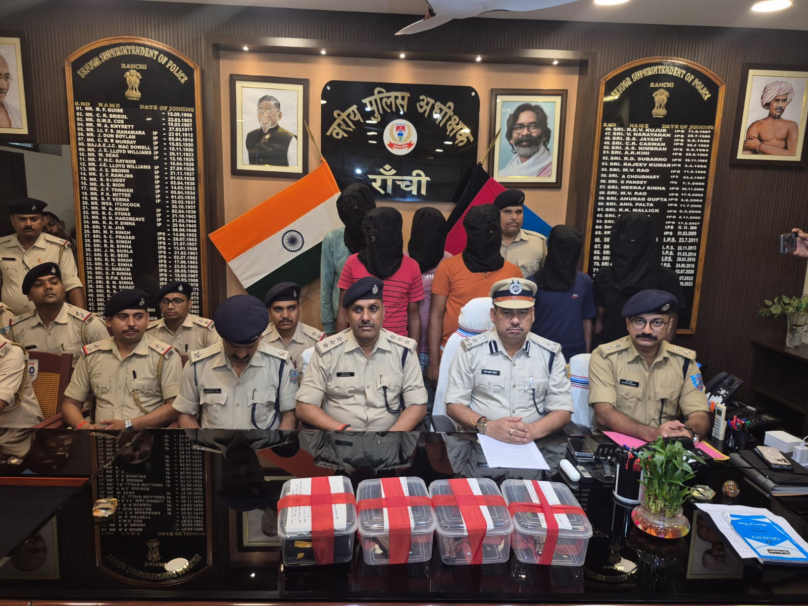 गिरफ्तार अपराधी में रातु थाना क्षेत्र के मुंडाटोली झखराटांड़ निवासी कुणाल कुमार उर्फ बसंत यादव, बुढ़मू थाना क्षेत्र के चकमे निवासी लाल मोहन प्रजापति, बनगांवा निवासी बबलू यादव, चकमे मेन रोड निवासी श्रीचंद प्रजापति उर्फ चंदू, मुरुपीरी निवासी विजय प्रजापति और मांडर थाना क्षेत्र के दौठाटोली निवासी इमरोज अंसारी का नाम शामिल है. आरोपी के निशानदेही पर मैगजीन लगा घटना में प्रयुक्त तीन देशी पिस्टल, 5 गोली, बाईक (JH01CD-3890), अल्टो कार (JH01CB-8310) और 9 मोबाईल पुलिस ने बरामद किया है. कुणाल कुमार उर्फ बसंत यादव, लाल मोहन प्रजापति और इमरोज अंसारी का अपराधिक इतिहास रहा है. तीनों के विरुद्ध रातु, बूढ़मू और मांडर थाना में पांच मामला दर्ज है.