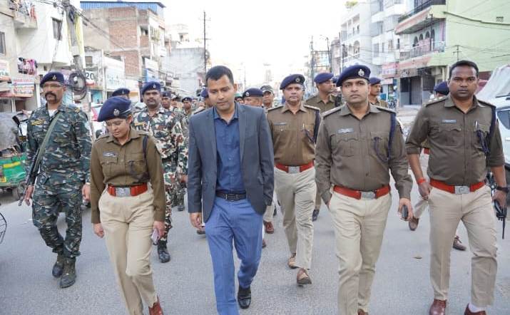 Ranchi: होली के मद्देनजर सुरक्षा व्यवस्था को लेकर राजधानी रांची के विभिन्न थाना क्षेत्र में फ्लैग मार्च निकाला गया. होली पर्व के मद्देनजर सुरक्षा व्यवस्था को लेकर रांची जिला पुलिस पूर्ण मनोयोग से कार्य कर रही है. इसी क्रम में सिटी एसपी, एसडीओ, सिटी डीएसपी एवं कोतवाली डीएसपी के नेतृत्व में लालपुर, कोतवाली, लोअर बाजार सहित अन्य थाना क्षेत्रो में फ्लैग मार्च निकाला गया. फ्लैग मार्च का मुख्य उद्देश्य होली के दौरान शांति और सौहार्द बनाए रखना,आमजन में विश्वास उत्पन्न करना और आकस्मिकता की स्थिति से निपटने की पूर्व तैयारी करना है. इस दौरान संवेदनशील क्षेत्रों, पुलिस बल की प्रतिनियुक्ति और सुरक्षा की स्थिति की सूक्ष्मतापूर्वक समीक्षा की गई तथा प्रतिनियुक्त बलो को ब्रीफ किया गया. आमजन से अपील है कि वे किसी भी संदिग्ध गतिविधि एवं असामाजिक तत्वों की तुरंत सूचना पुलिस तक पहुंचायें.