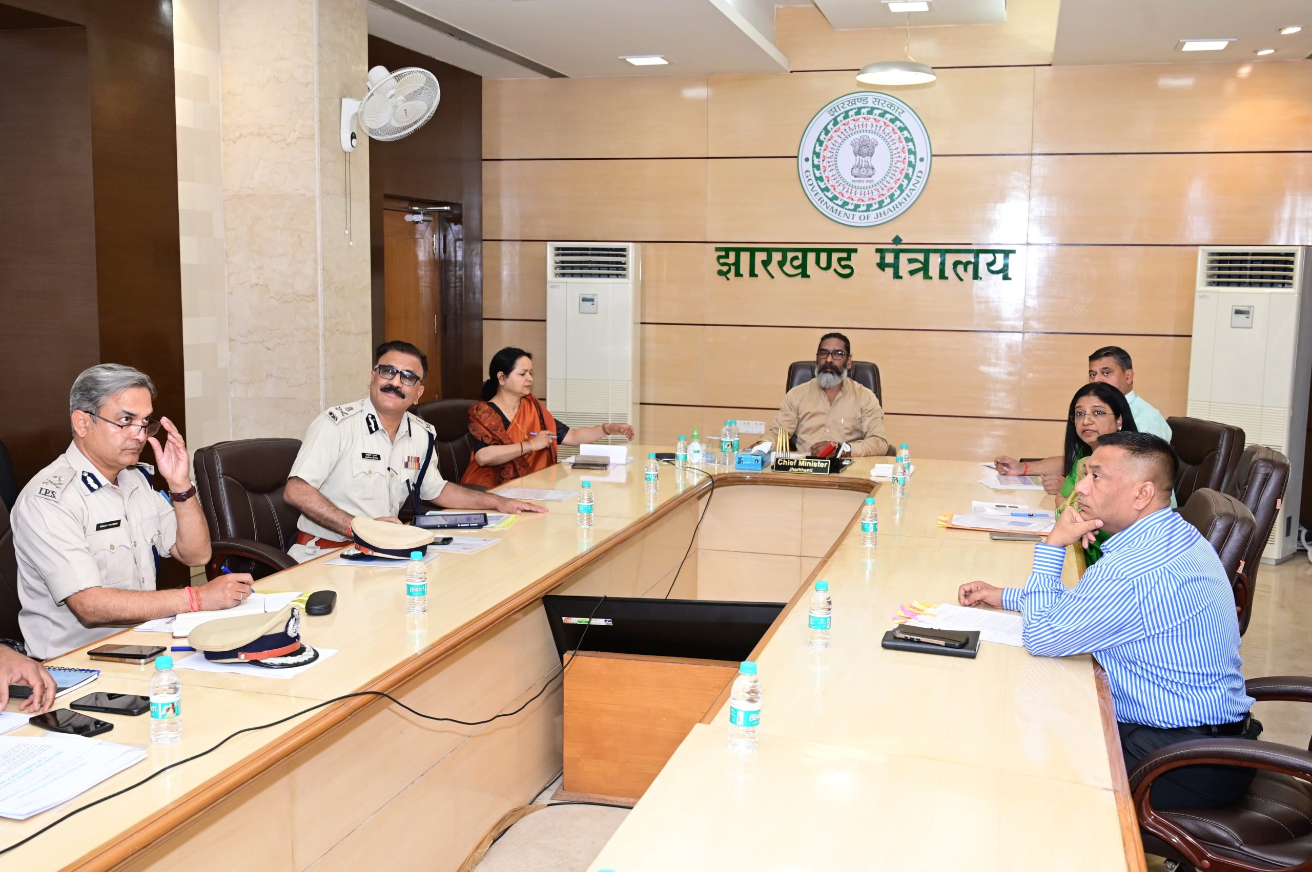 Ranchi: मुख्यमंत्री हेमन्त सोरेन बुधवार को झारखंड मंत्रालय में आगामी पर्व-त्योहारों को देखते हुए राज्य में विधि व्यवस्था संधारण की उच्चस्तरीय समीक्षा की. मौके पर मुख्यमंत्री ने वरीय पुलिस अधिकारियों को आवश्यक दिशा-निर्देश दिए. बैठक में मुख्य सचिव अलका तिवारी, अपर मुख्य सचिव अविनाश कुमार, प्रधान सचिव गृह विभाग वंदना दादेल, डीजीपी अनुराग गुप्ता, आईजी विशेष शाखा प्रभात कुमार, आईजी अभियान ए वी होमकर, आईजी सीआईडी असीम विक्रांत मिंज, आईजी मुख्यालय मनोज कौशिक सहित अन्य वरीय पुलिस अधिकारी उपस्थित थे.