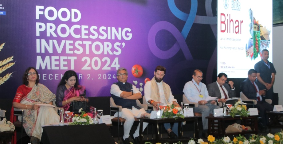 Patna/delhi: बिहार बिजनेस कनेक्ट 2024 के परिपेक्ष्य में आयोजित फूड प्रोसेसिंग इन्वेस्टर मीट में देश दुनिया के बड़े निवेशकों ने न केवल भाग लिया बल्कि राज्य में निवेश की इच्छा भी जताई. राजधानी पटना के होटल ताज में आयोजित इस कार्यक्रम में केंद्रीय खाद्य प्रसंस्करण उद्योग मंत्री चिराग पासवान मुख्य अतिथि के रूप में और राज्य के उद्योग मंत्री नीतीश मिश्रा विशिष्ट अतिथि के रूप में उपस्थित रहे. साथ ही राज्य के मुख्य सचिव अमृत लाल मीना व विभाग के शीर्ष अधिकारी भी समारोह में शामिल हुए.
