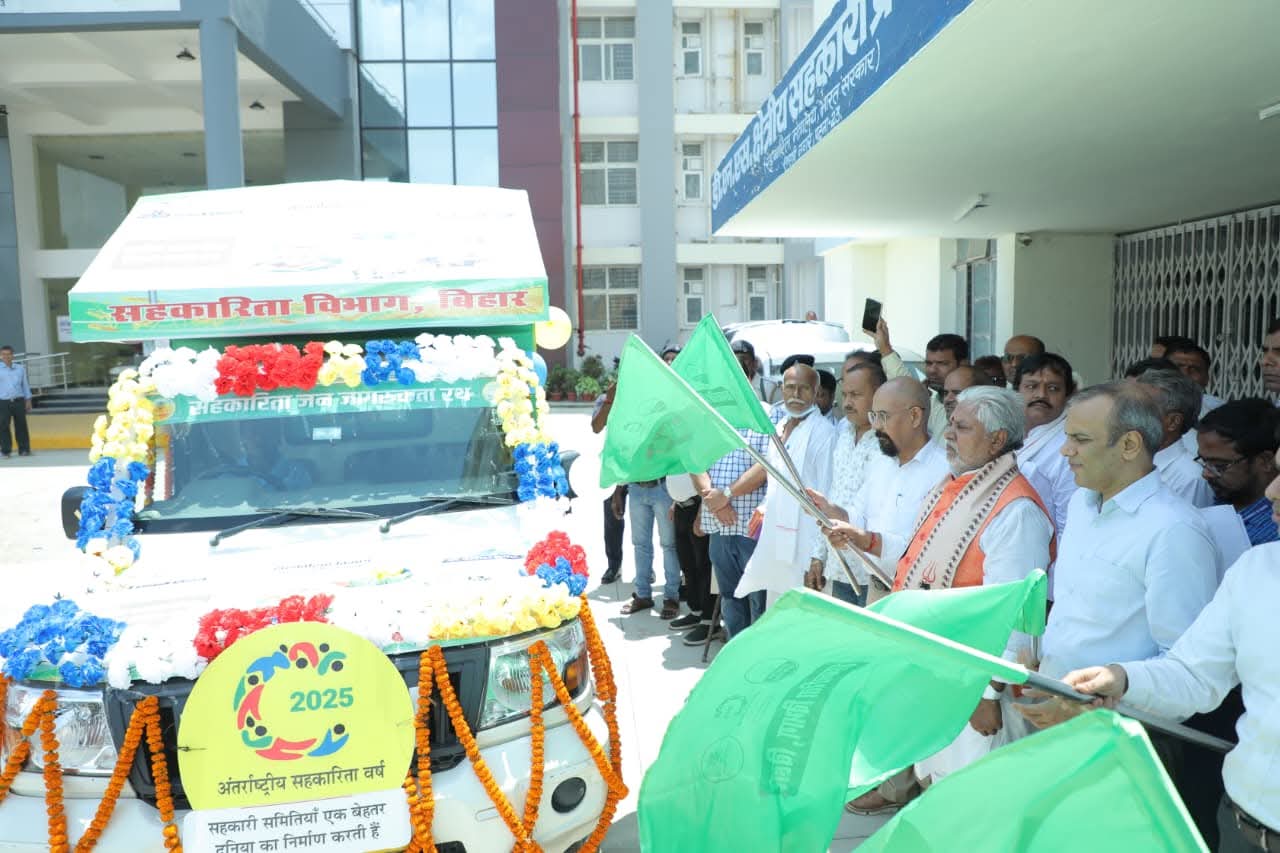 Patna: सूबे के सहकारिता मंत्री डॉ॰ प्रेम कुमार ने मंगलवार को दीप नारायण सिंह पटना स्थित क्षेत्रीय सहकारी प्रबंध संस्थान में सहकारिता विभाग, बिहार सरकार द्वारा आयोजित ’’किसान सहकारी चैपाल’’ कार्यक्रम का शुभारंभ किया. इस अवसर पर विभागीय योजनाओं के व्यापक प्रचार-प्रसार के लिए LED युक्त प्रचार वाहन को हरी झंडी दिखाकर उन्होंने रवाना भी किया. इस दौरान एक नुक्कड़ नाटक का आयोजन कर भी विभाग की योजनाओं की जानकारी दी गई.