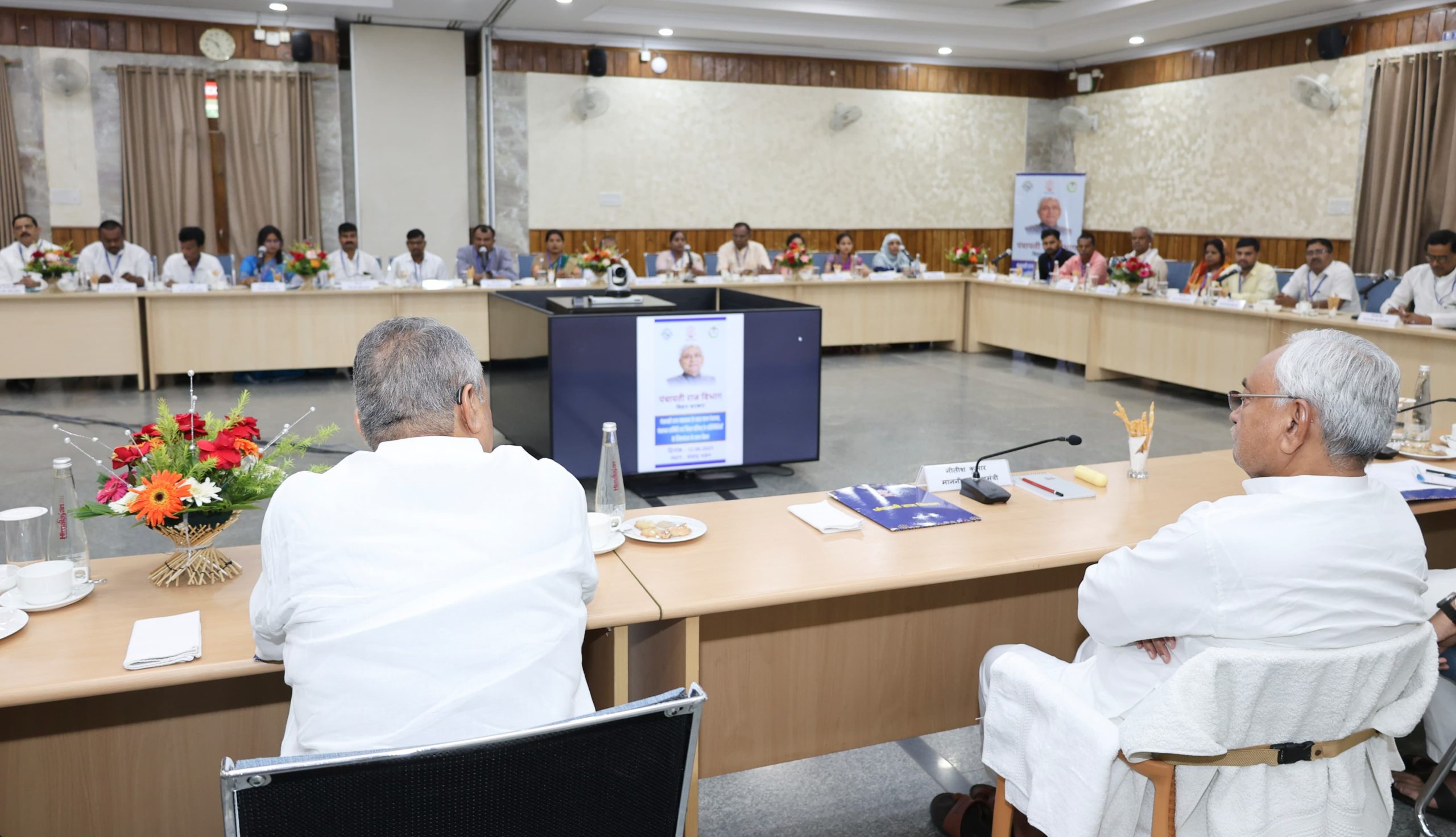 Patna: मुख्यमंत्री नीतीश कुमार गुरुवार को मुख्यमंत्री सचिवालय स्थित ‘संवाद’ में पंचायती राज व्यवस्था के तहत ग्राम पंचायत, पंचायत समिति एवं जिला परिषद् के प्रतिनिधियों के शिष्टमंडल के साथ बैठक की. बैठक को संबोधित करते हुये मुख्यमंत्री ने कहा कि बहुत खुशी की बात है कि पंचायती राज व्यवस्था के तहत ग्राम पंचायत, पंचायत समिति एवं जिला परिषद् के प्रतिनिधियों के शिष्टमंडल के साथ बैठक आयोजित की गयी है. मुख्य सचिव एवं विभागीय पदाधिकारियों के द्वारा आपकी मांगों से हमें अवगत कराया गया है. आपकी अधिकतर मांगों के संबंध में पंचायती राज विभाग नियमानुसार कारवाई कर रहा है. वही मुख्य मांगो पर घोषणा किया गया.