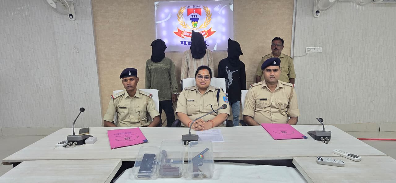 Ranchi: पलामू के चैनपुर थाना पुलिस ने हसन अली हत्याकांड का उद्भेदन करते हुए तीन आरोपी को गिरफ्तार किया है. मृतक हसन अली आरोपी के चाचा को जान से मारने के लिए किसी से सुपारी लिया था. इसके बाद से आरोपी हसन अली की गतिविधियों पर नज़र रखने लगा. मौका देखते ही घटना को अंजाम दिया. गिरफ्तार अपराधी में इजहार खान, सद्दाम अंसारी और मोबारक अंसारी का नाम शामिल है. तीनों चैनपुर थाना क्षेत्र के हुसैनी मोहल्ला, शाहपुर का रहने वाला है. आरोपी के पास से एक देशी कट्टा, एक देशी पिस्टल, तीन गोली, एक बाईक और एक मोबाइल पुलिस ने बरामद किया है.