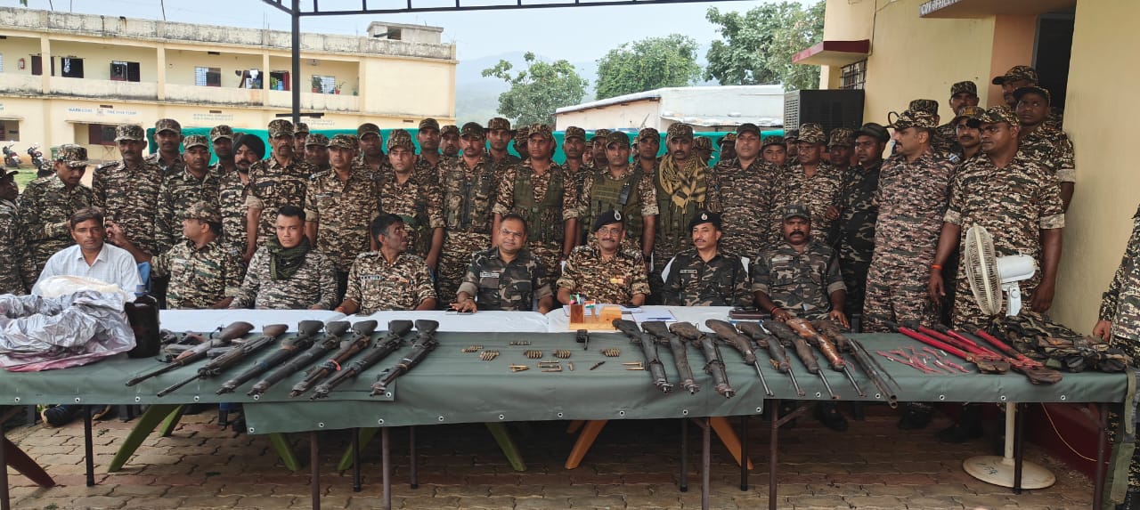 बरामद समान में 303 बोर का आठ राइफल, 12 बोर का एक बंदूक, 14 सिंगल शार्ट बंदूक, राइफल, मैगजीन के साथ एसएलआर राइफल, वायर कटर, मैगजीन पाउच, पिस्तौल पाउच, इलेक्ट्रिक डेटोनेटर