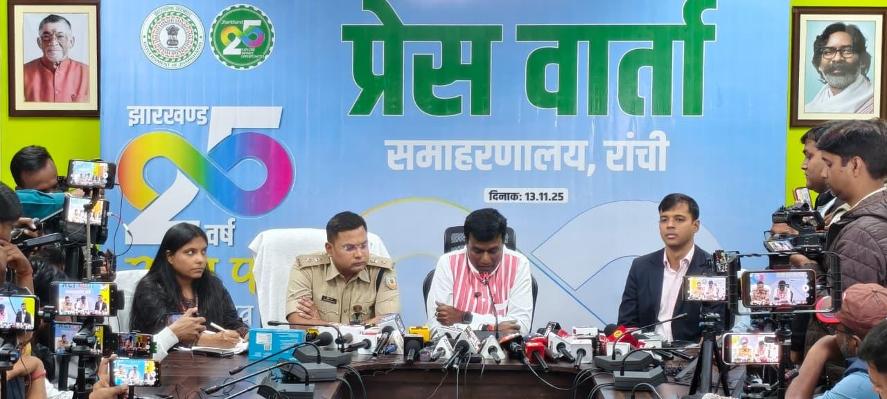 Ranchi: झारखंड राज्य स्थापना दिवस की 25वीं वर्षगांठ को लेकर 11 नवंबर से राज्य भर में विभिन्न कार्यक्रमों का आयोजन किया जा रहा है. रजत जयंती समारोह का मुख्य कार्यक्रम दिनांक 15 एवं 16 नवंबर को मोरहाबादी मैदान में आयोजित किया जायेगा. गुरुवार को रांची डीसी मंजूनाथ भजन्त्री एवं एसएसपी राकेश रंजन की संयुक्त प्रेस कॉन्फ्रेंस कर 15-16 नवंबर को होने वाले मुख्य कार्यक्रमों की विस्तृत रूपरेखा साझा की. डीसी ने बताया कि राज्य सरकार के निदेशानुसार इस वर्ष सिल्वर जुबिली समारोह भव्यता के साथ मनाया जाएगा. प्रेस कॉन्फ्रेंस के दौरान बताया गया कि 15 नवंबर को मोरहाबादी मैदान में आयोजित मुख्य कार्यक्रम में राज्यपाल मुख्य अतिथि होंगे एवं सीएम हेमंत सोरेन की अध्यक्षता में कार्यक्रम होगा. कार्यक्रम दोपहर 2 बजे से प्रारंभ होगा, जिसमें हजारों की संख्या में राज्यवासियों के आने की संभावना है. जिला प्रशासन का लोगों से अनुरोध है कि 1:00 बजे से पहले कार्यक्रम स्थल में अपना स्थान ग्रहण कर लें.