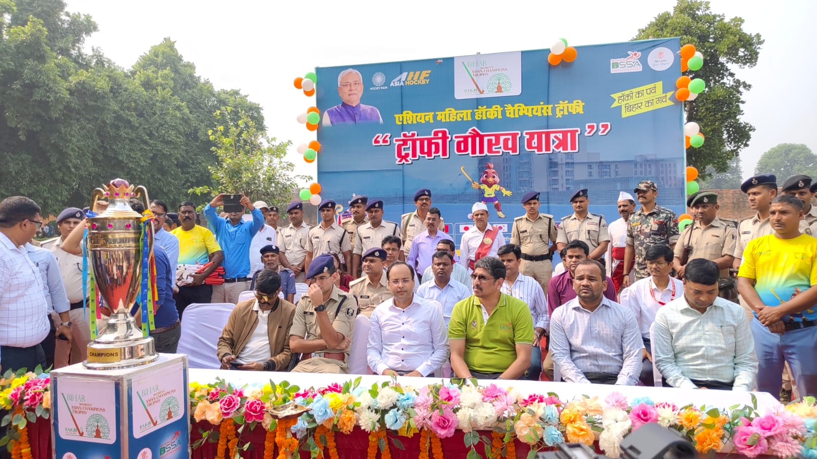 एशियन महिला हॉकी चैंपियंस ट्रॉफी के सफल आयोजन के लिए आमजनों के बीच ट्रॉफी गौरव यात्रा के माध्यम से जिला प्रशासन द्वारा प्रचार प्रसार करते हुए व्यापक रूप से जागरूकता फैलाई जा रही है.महिला हॉकी मैच की विस्तृत जानकारी के लिए हॉकी राजगीर 2024 ऐप का लॉन्चिंग किया गया. ट्रॉफी यात्रा के अवसर पर नालंदा खंडहर से गुब्बारा छोड़कर जागरूकता फैलाई गई. स्काउट गाइड,एन सीसी, हॉकी खिलाड़ियों के द्वारा