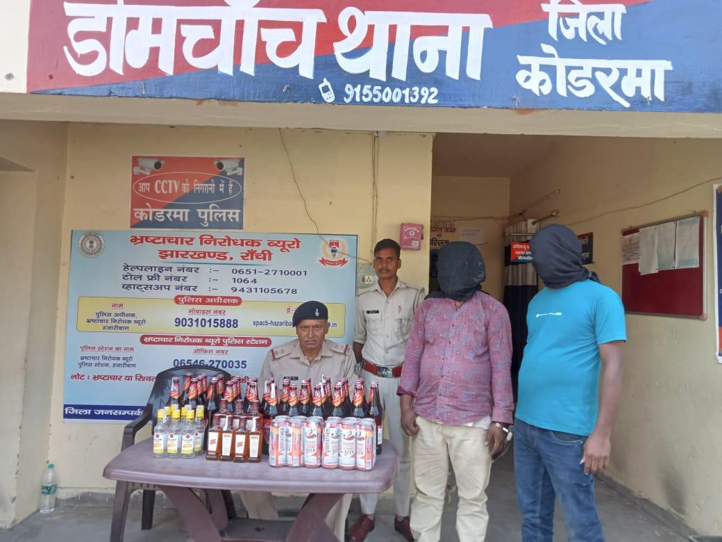 पुलिस से मिली जानकारी के अनुसार कोडरमा एसपी को गुप्त सूचना मिली कि डोमचाच थाना क्षेत्र के ग्राम ढोढाकोला चौक के पास स्थित विशाल मोदी के किराना दुकान में तथा डोमचाच बाजार स्थित एसबीआई बैंक के बगल में स्थित राजेन्द्र कुमार शर्मा के अंडा दुकान में अंग्रेजी शराब को छिपा कर खरीद-बिक्री करता है. सूचना पर डोमचाच थाना प्रभारी के नेतृत्व में एक विशेष टीम का गठन किया गया. गठित टीम कार्रवाई करते हुए ग्राम ढोढाकोला चैक विशाल मोदी के किराना दुकान एवं राजेन्द्र कुमार शर्मा के अंडा दुकान में बारी-बारी से छापामारी किया. जिस क्रम में विशाल मोदी के किराना दुकान से विभिन्न ब्रांड 41 बोतल अग्रेजी शराब व बीयर और राजेन्द्र कुमार शर्मा के अंडा दुकान से विभिन्न ब्रांड के 24 बोतल शराब, बीयर बरामद किया गया. इस संबंध में डोमचाच थाना (कांड सं0 86/25) में मामला दर्ज किया गया है. दोनो आरोपी को न्यायिक हिरासत में जेल भेज दिया गया.