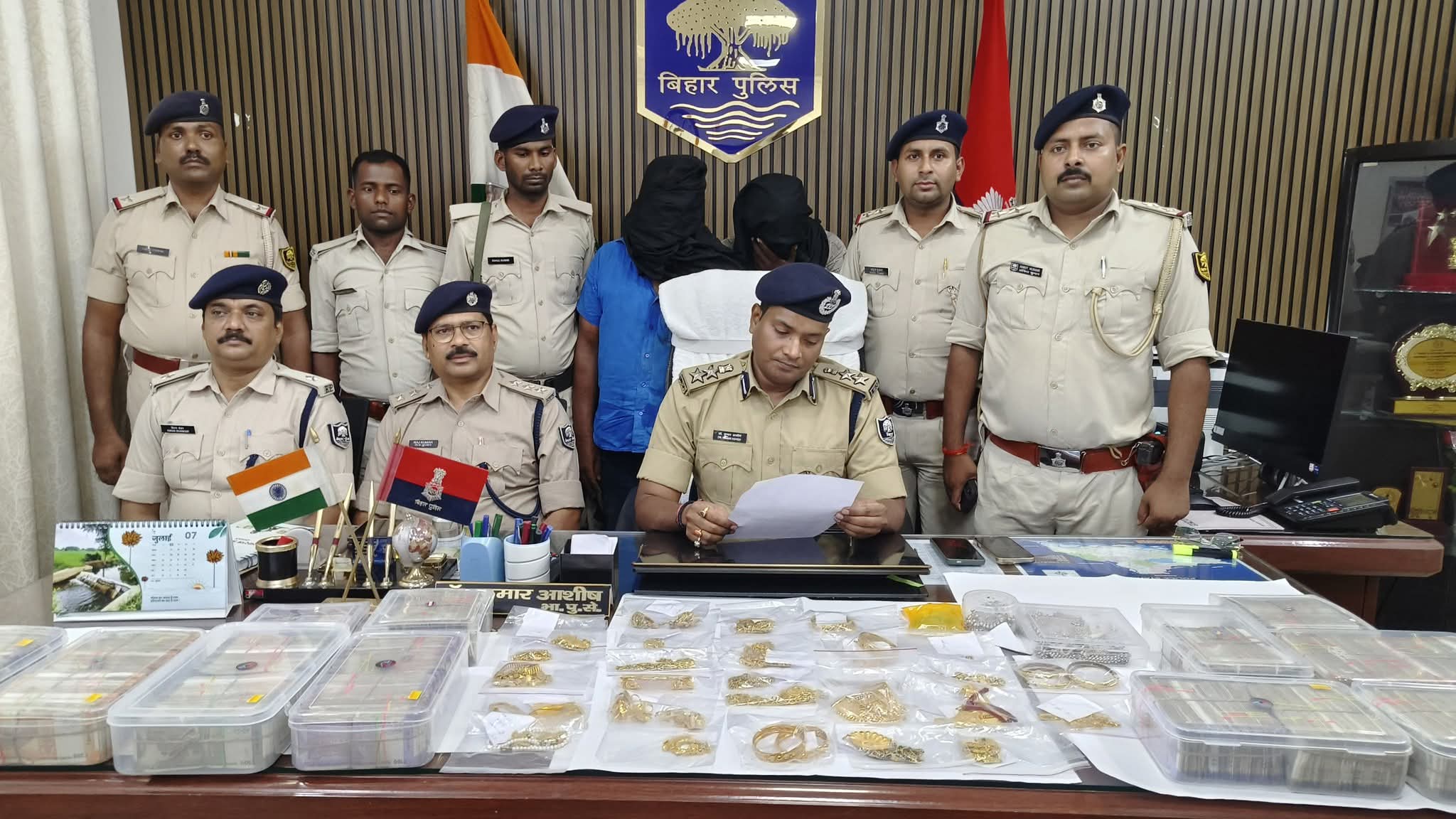 वैशाली जिले के टाउन थाना क्षेत्र के नकाश चौक श्रीरोड के रहने वाले आरोपी मुकेश कुमार व उसका भाई पुत्र राकेश कुमार फ़ोटो खिंचने के बहाने महिलाओं से गहने उतरवाता था. और लेकर फरार हो जाता है. आरोपी के पास से 808.31 ग्राम सोने का आभूषण, 1060.10 ग्राम चांदी का आभूषण, 53,30,000 लाख नगद, बाइक व मोबाइल बरामद किया है. दोनो के विरुद्ध आधा दर्जन से अधिक मामला विभिन्न थाना पे दर्ज है.
