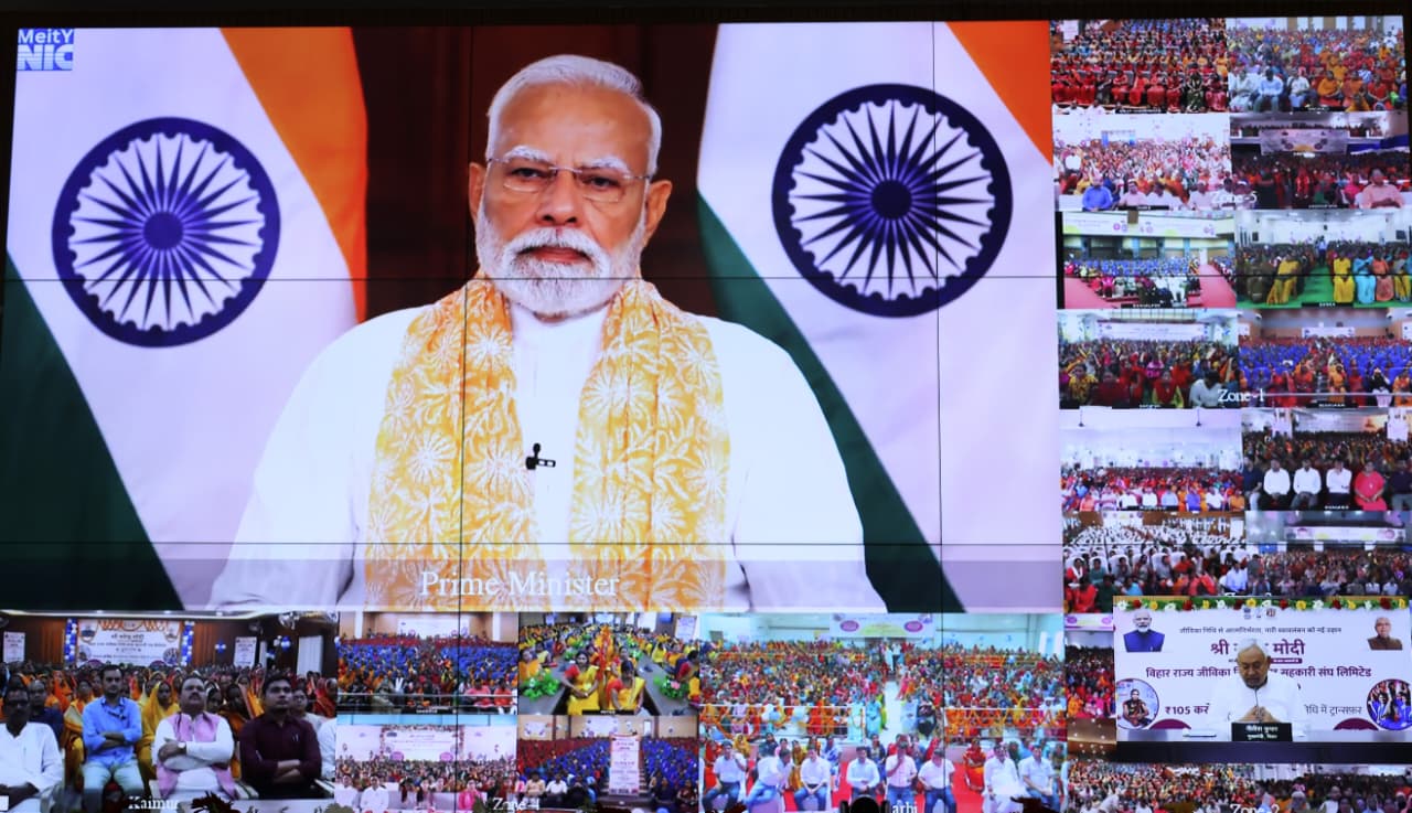 Patna: प्रधानमंत्री नरेंद्र मोदी ने वीडियो कॉन्फ्रेंसिंग के माध्यम से रिमोट का बटन दबाकर बिहार राज्य जीविका निधि साख सहकारी संघ लिमिटेड का शुभारंभ किया. साथ ही प्रधानमंत्री ने 105 करोड़ रुपये की राशि का जीविका निधि में ट्रांसफर किया. कार्यक्रम के दौरान अपने संबोधन में प्रधानमंत्री ने मुख्यमंत्री नीतीश कुमार एवं उनकी सरकार द्वारा महिला सशक्तीकरण के लिए किए गए कार्यों की सराहना की. उन्होंने कहा कि केंद्र सरकार बिहार के विकास के लिए हर संभव सहयोग प्रदान कर रही है. बिहार का विकास केंद्र सरकार की प्राथमिकता में है.