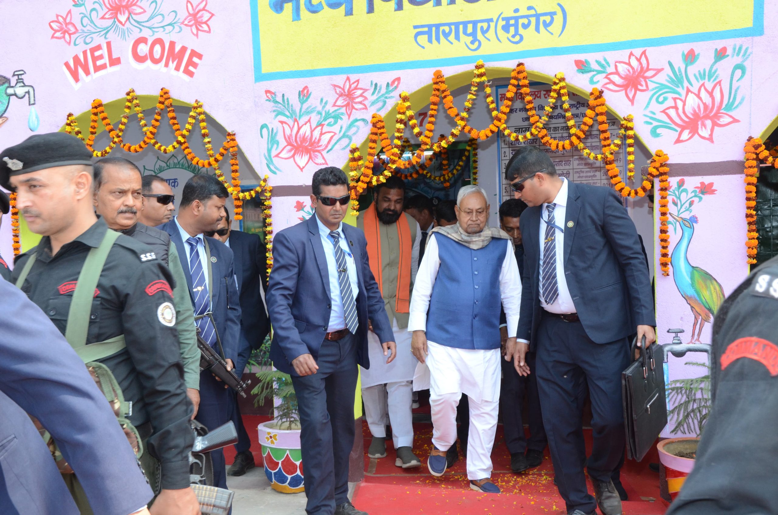 मुख्यमंत्री नीतीश कुमार मुंगेर जिला के तारापुर प्रखंड में विभिन्न विकासात्मक कार्यों का जायजा लिया. इस दौरान उन्होंने रणगांव में मध्य विद्यालय, आदर्श आंगनबाड़ी केंद्र तथा जीविका पुस्तकालय का निरीक्षण किया. इसके पश्चात् मुख्यमंत्री ने तारापुर प्रखंड के वंशीपुर गांव में प्रस्तावित रिंग रोड (तारापुर बाईपास पथ) का स्थलीय निरीक्षण किया. हवेली खड़गपुर प्रखंड के ऋषिकुंड पर्यटक स्थल पहुंचे और वहां भ्रमण कर वहां के संबंध में अधिकारियों से विस्तृत जानकारी ली.