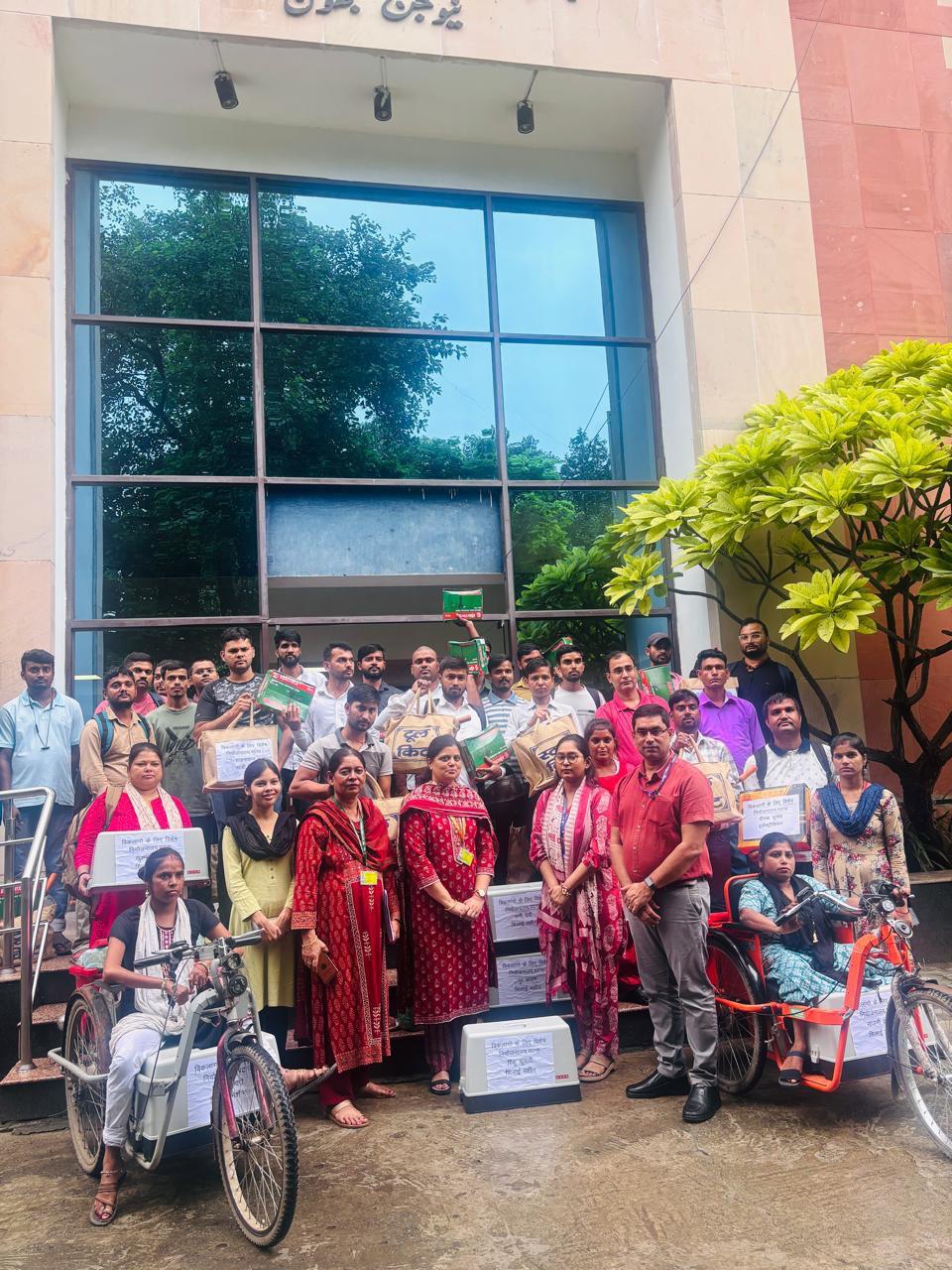 Patna: प्रतियोगिता परीक्षाओं की तैयारी करने और स्वरोजगार के इच्छुक दिव्यांग अभ्यर्थियों के बीच मंगलवार को श्रम संसाधन विभाग के अंतर्गत अवर प्रादेशिक नियोजनालय द्वारा निःशुल्क स्टडी किट एवं टूलकिट वितरण कार्यक्रम का आयोजन किया गया. इस कार्यक्रम में श्रम संसाधन विभाग के सचिव दीपक आनंद के द्वारा दिव्यांग अभ्यर्थियों के बीच स्टडी किट एवं टूलकिट का वितरण किया गया.