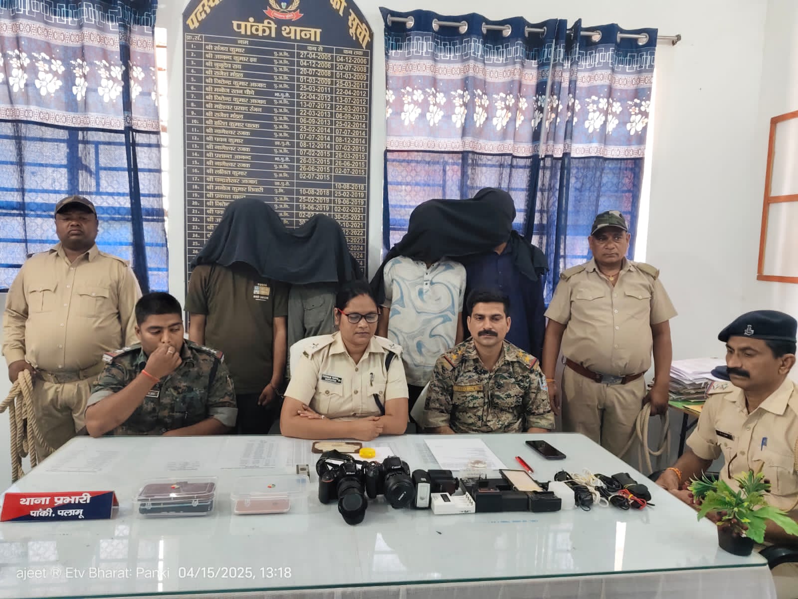 Ranchi: पलामू के पांकी थाना पुलिस ने युवक के साथ मारपीट कर लूटपाट करने वाले चार आरोपी को गिरफ्तार किया है. गिरफ्तार आरोपी में सुशील कुमार यादव, चुनु कुमार यादव, राहुल कुमार और राजन कुमार सिंह का नाम शामिल है. सभी आरोपी तरहसी थाना क्षेत्र के रहने वाले है. आरोपी के निशानदेही पर कैनन विडियो कैमरा, निकोन फोटो कैमरा, आईफोन मोबाइल, घटना में प्रयुक्त स्वीफ्ट डिजायर कार (JH01FL-1235) और चारों आरोपी का मोबाइल पुलिस ने बरामद किया है. पुलिस के अनुसार बीते सोमवार को मनोज कुमार नामक व्यक्ति के लिखित आवेदन के आधार पर पांकी थाना (कांड सं0-44/2025) मामला दर्ज किया गया था. जिसमे बताया गया था कि , धारा 309(4) बी.एन.एस. के तहत प्राथमिकी चार अज्ञात अपराधियों ने मारपीट कर कैनन विडियो कैमरा, निकोन फोटो कैमरा एवं आईफोन मोबाइल की लूट लिया. मामले को लेकर पलामू एसपी के आदेश पर पांकी अंचल निरीक्षक के नेतृत्व में छापेमारी दल का गठन किया गया. छापामारी दल त्वरित कार्रवाई करते हुए लूट में प्रयुक्त वाहन सहित चारों आरोपी को गिरफ्तार कर लूटे गए सामान को बरामदग किया.