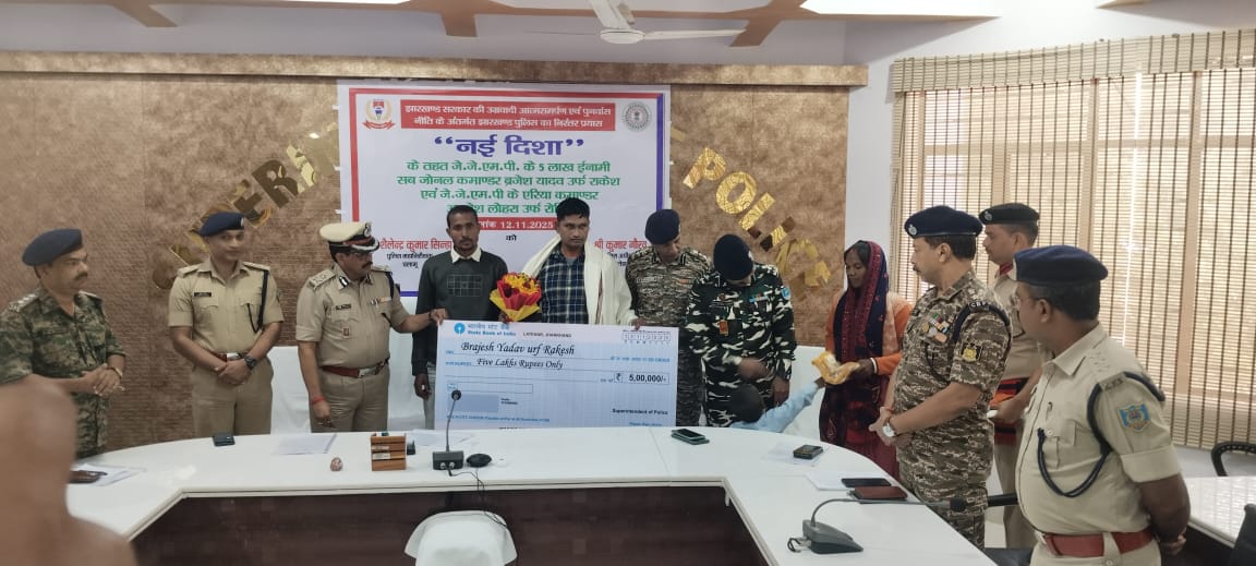 Ranchi: पांच लाख के इनामी सबजोनल कमाण्डर के साथ एरिया कमांडर ने लातेहार पुलिस के समक्ष बुधवार को सरेंडर कर दिया. इनमें लातेहार जिले के हेरहंज थाना क्षेत्र के बंदुआ निवासी एरिया कमांडर अवधेश लोहरा उर्फ रोहित लोहरा और गुमला जिले के विशुनपुर थाना क्षेत्र के कड्डोकवा निवासी सबजोनल कमाण्डर 5 लाख के इनामी ब्रजेश यादव उर्फ राकेश जी का नाम शामिल है. जेजेएमपी से जुड़े दोनो उग्रवादी सरकार के द्वारा चलाये गये आत्मसमर्पण निति के तहत मुख्य धारा से जुड़ने की अपील पर पलामू जोन के आईजी के समक्ष लातेहार एसपी के कार्यालय में सरेंडर किया.