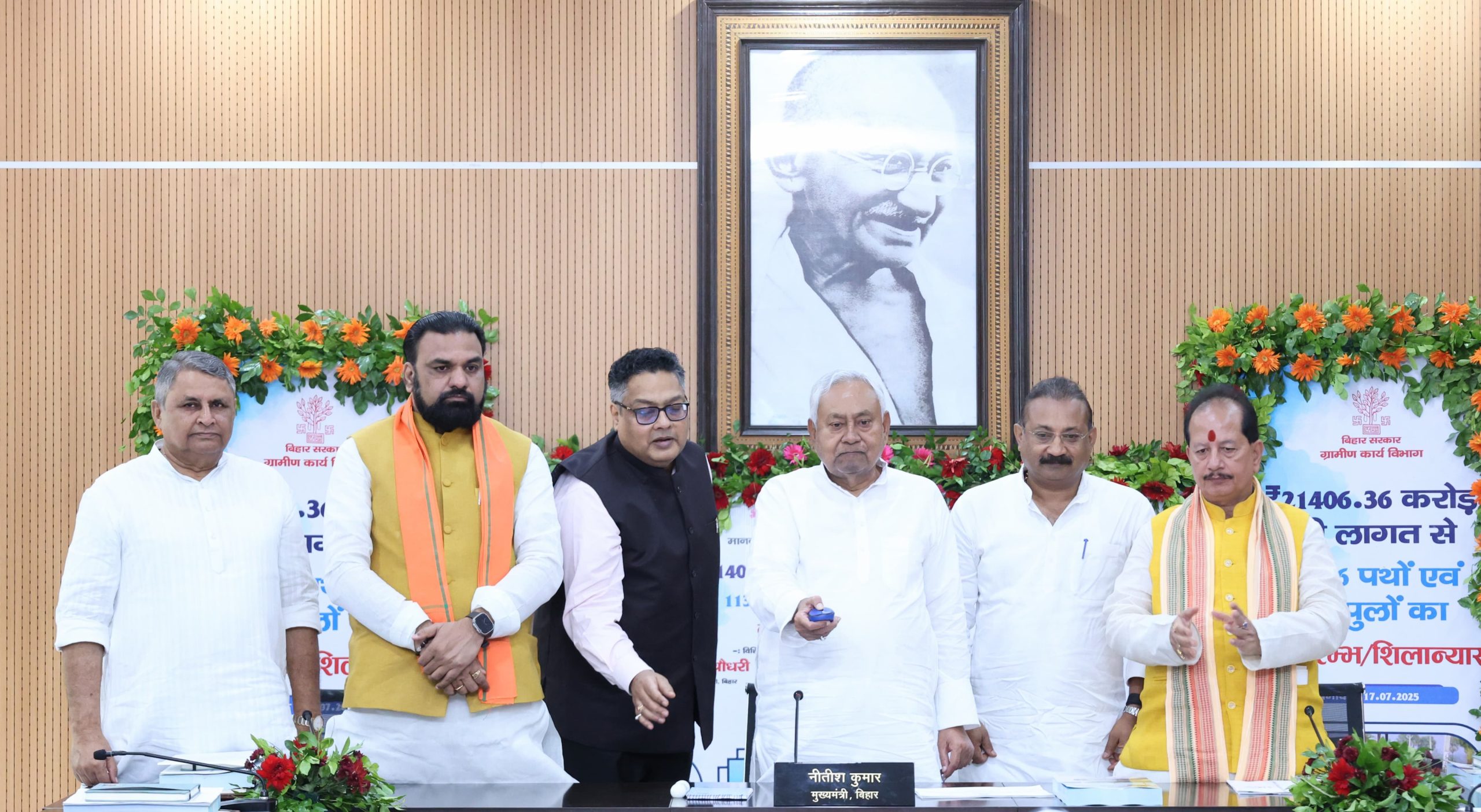 Patna: मुख्यमंत्री नीतीश कुमार गुरुवार को 1 अणे मार्ग स्थित ‘संकल्प’ से ग्रामीण कार्य विभाग अंतर्गत 21406.36 करोड़ रुपए की लागत वाले 11346 पथों एवं 730 पुलों का रिमोट के माध्यम से कार्यारंभ एवं शिलान्यास किया. कार्यक्रम के दौरान ग्रामीण कार्य विभाग के अपर मुख्य सचिव दीपक कुमार सिंह ने ग्रामीण सड़कों एवं सेतु की योजनाओं के संबंध में मुख्यमंत्री को विस्तृत जानकारी दी. ग्रामीण कार्य विभाग अंतर्गत योजनावार ग्रामीण सड़कों एवं पुलों के निर्माण की अद्यतन स्थिति, निर्मित ग्रामीण पथों के नवीनीकरण, उन्नयन की विवरणी, ग्रामीण सड़क सुदृढ़ीकरण एवं प्रबंधन कार्यक्रम, मुख्यमंत्री ग्रामीण संपर्क योजना (अवशेष), मुख्यमंत्री ग्रामीण सेतु योजना तथा सुलभ समपर्कता योजना की प्रगति एवं अद्यतन स्थिति को भी साझा किया.