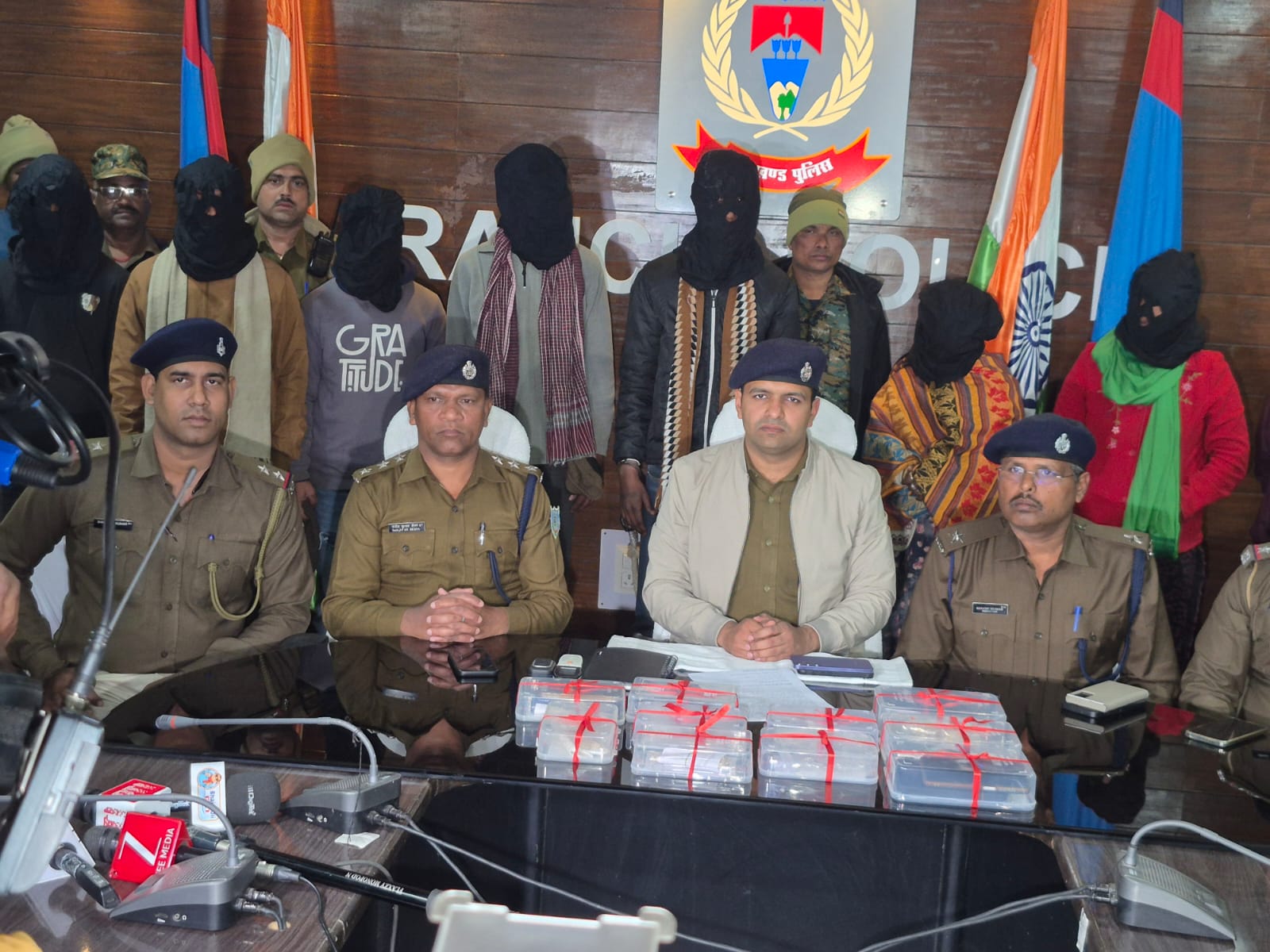 मामले की जानकारी देते हुए सिटी एसपी ने बताया कि एसएसपी के द्वारा मादक पदार्थों के विरुद्ध कार्रवाई के संबंध में लगातार दिये जा रहे निर्देशों के आलोक में सदर डीएसपी के नेतृत्व में एक छापामारी टीम गठन किया गया. गठित छापामारी टीम प्राप्त सूचना के आधार पर कोकर तिरिल स्थित शांतिनगर रोड नं0-10 से बाबला राम के घर पर छापामारी किया गया. छापामारी के क्रम में तीन महिला समेत पाँच आरोपी अम्बर कुमार राम उर्फ टमन उर्फ तपन, पिता बाबला राम, मां मुन्नी देवी, सुप्रिया कुमारी उर्फ काव्या कुमारी, दिव्या कुमारी को पकड़ा गया. तलाशी के क्रम में अम्बर कुमार राम के पास से ब्राउन सुगर, मोबाईल एवं 5250 रुपये, बाबला राम के पास से 8 ब्राउन सुगर एवं मोबाईल, मुन्नी देवी के पास से ब्राउन सुगर एवं मोबाईल एवं दिव्या कुमारी के पास से 5 पुड़िया ब्राउन सुगर एवं मोबाईल बरामद किया गया. पकड़े गए आरोपी ने पुलिस को पूछताछ में बताया कि अम्बर कुमार राम बिहार के पिरो से बड़ी मात्रा में ब्राउन सुगर खरीद कर लाता था. तथा शांतिबिहार, तिरिल स्थित अपने घर में अपने माता-पिता, बहन, किरायेदार की मदद से छोटे-छोटे पुडिया बनाकर अपने छोटे भाई एवं दोस्तों की मदद से कोकर एवं आस पास के क्षेत्रों में 1300-1500 प्रति पुड़िया के दर से बेचता है. साथ ही बताया कि अभी उसका छोटा भाई तथा उसके दोस्त लोग कोकर जतराटांड़ में ब्राउन सुगर की बिक्री कर रहा है. अम्बर राम के निशानदेही पर कोकर बाजार जतराटॉड़ स्थित मैदान के चबुतरा के पास से ब्राउन सुगर की बिक्री कर रहे पियुष कुमार, समीर तिर्की एवं अमन कुमार को पकड़ा गया. तलाशी में पियुष कुमार के पास से ब्राउन सुगर, मोबाईल एवं 2050 रुपये, समीर तिर्की के पास से छः पुड़िया ब्राउन सुगर एवं मोबाईल एवं अमन कुमार के पास से 9 पुड़िया ब्राउन सुगर एवं एक मोबाईल बरामद हुआ. घटनास्थल से एक KTM बाईक (JH01FS 5882) बरामद हुआ. इस संबंध में सदर थाना (काण्ड संख्या-632/25) में मामला दर्ज किया गया है. अम्बर कुमार राम उर्फ टमन उर्फ तपन का अपराधिक इतिहास रहा है. आरोपी के विरुद्ध सदर 13 समेत अन्य थानों 3 में 16 मामले दर्ज है.