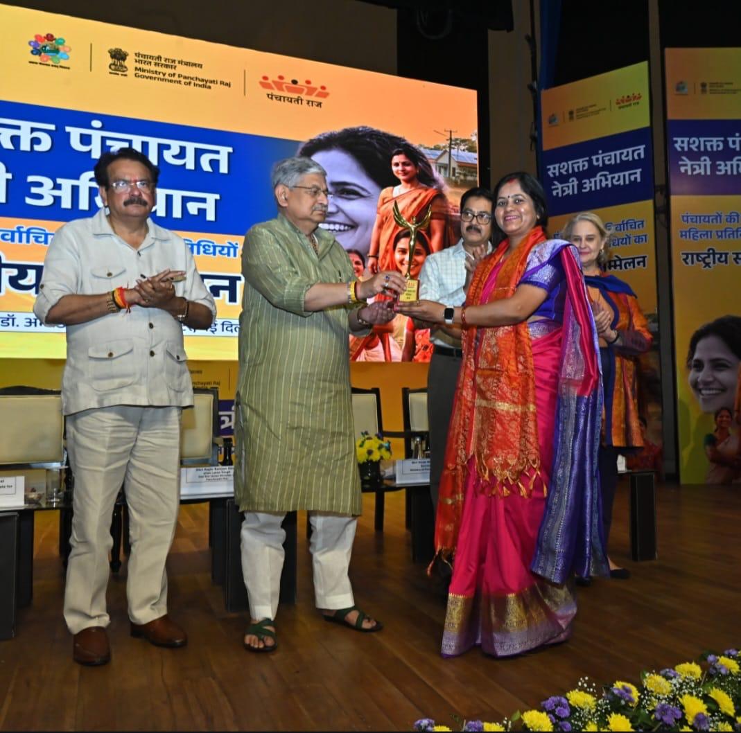 Patna: पंचायती राज मंत्रालय ने नई दिल्ली में 11 मार्च को‘सशक्त पंचायत-नेत्री अभियान‘ के एक साल पूरे होने पर चुनी हुई महिला प्रतिनिधियों का राष्ट्रीय सम्मेलन आयोजित किया. इस सम्मेलन में केंद्रीय पंचायती राज मंत्री राजीव रंजन सिंह उर्फ ललन सिंह ने 24 राज्यों और केंद्र शासित प्रदेशों से एक-एक उत्कृष्ट महिला पंचायत लीडर को ग्रामीण शासन में उनके योगदान के लिए सम्मानित किया. यहां बिहार के सारण जिले के तरैया प्रखंड के डेवढ़ी ग्राम पंचायत की मुखिया प्रियंका सिंह को महिला हितैषी ग्राम पंचायत निर्माण की दिशा में राज्य में किए गए उत्कृष्ट कार्य, ग्राम पंचायत में महिला सुरक्षा, स्वास्थ्य व आर्थिक सशक्तिकरण सुनिश्चित करने के लिए सम्मान मिला.