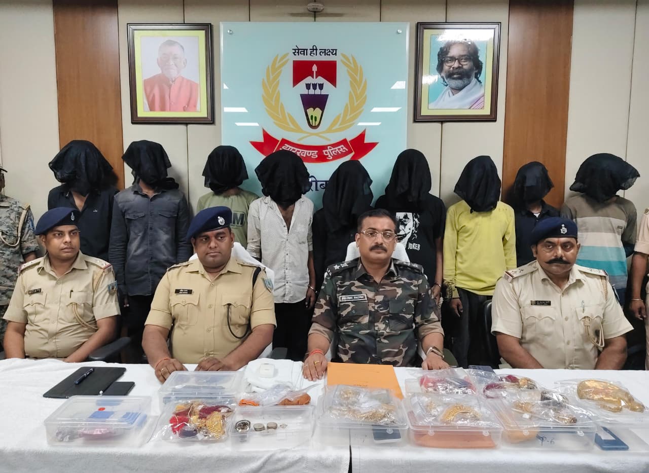 गुरुवार को घटना की जानकारी देते हुए हजारीबाग एसपी ने बताया कि 13 सितंबर को मुफस्सिल थाना क्षेत्र के बभनी निवासी सुमन कुमार मल्लिक के घर पर रात को करीब आठ की संख्या में अपराधियों ने डकैती की घटना को अंजाम दिया था., जिसमें लगभग 80 लाख रुपये मूल्य के गहने लूटे गए. इस संबंध में मुफस्सिल थाना (कांड संख्या-155/25) में मामला दर्ज किया गया. मामले की गंभीरता को देखते हुए सदर एसडीपीओ के नेतृत्व में एसआईटी टीम का गठन कर विशेष अभियान चलाया गया. लगातार छापामारी, आसूचना संकलन एवं तकनीकी शाखा के सहयोग से प्राप्त गुप्त सूचना के आधार पर बीते रात करीब 2 बजे हत्यारी जंगल में कार्रवाई कर मुख्य आरोपी रणवीर कुमार सिंह उर्फ छोटू उर्फ जोकर सहित 9 अपराधियों को गिरफ्तार किया गया. उनकी निशानदेही पर डकैती में लूटे गए 131 सोने के आभूषण 25 चाँदी के सिक्के, 2 बाईक, 1 देशी पिस्टल समेत अन्य समान बरामद किया गया.