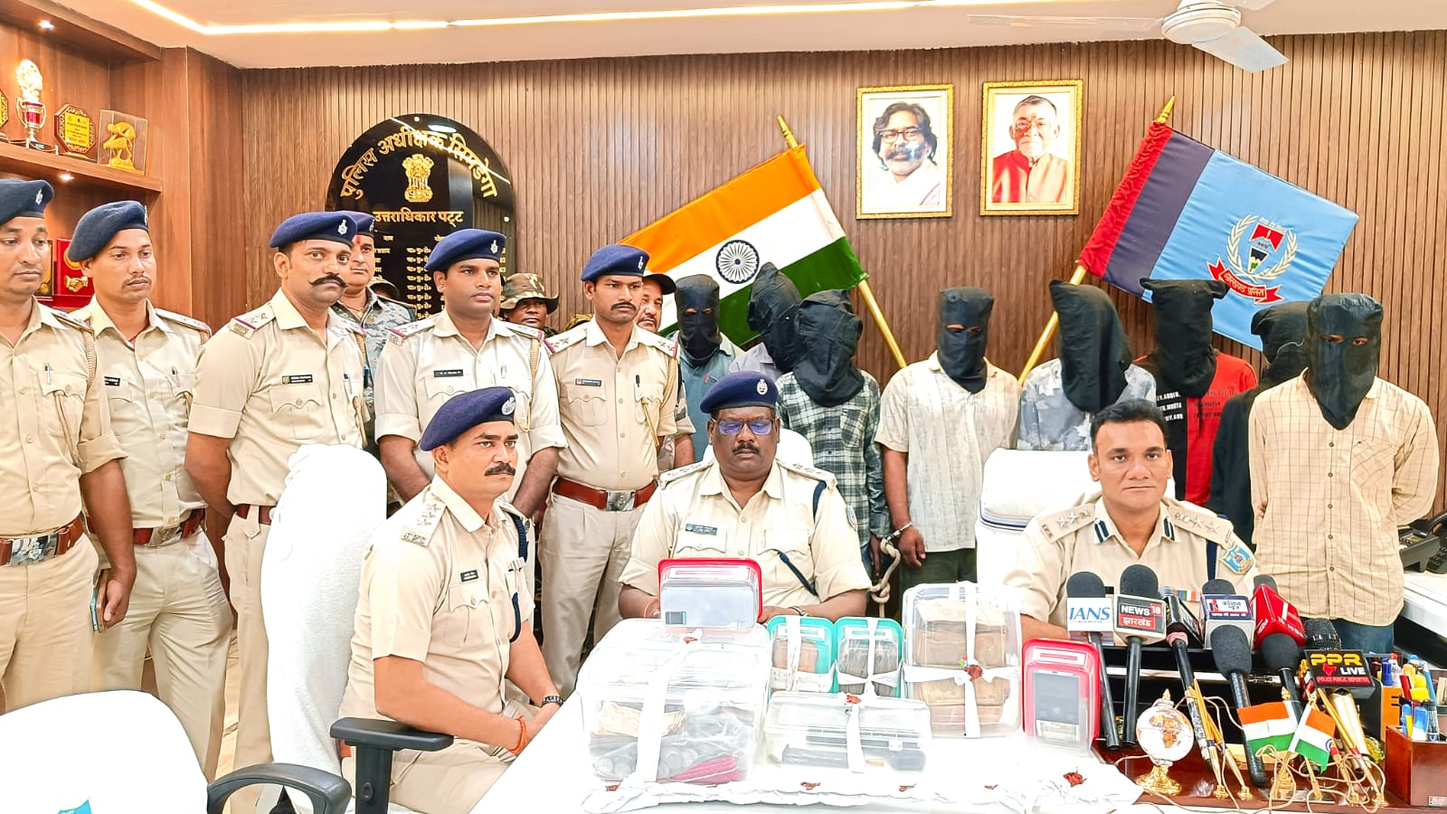 Ranchi: सिमडेगा के तुमडेगी चर्च में हुए डकैती का पुलिस उद्भेदन कर लिया है. नौ अपराधियों ने घटना को अंजाम दिया था. योजनाबद्ध तरीके इस वारदात को अंजाम दिया गया. कई दिन तक रेकी करने के बाद डकैती की घटना को अंजाम दिया गया. घटना को अंजाम देने के बाद कुछ अपराधी गोवा मस्ती करने पहुंच गया. पुलिस की अलग-अलग टीम अपराधियों पर नजर रख रही थी. गिरफ्तार अपराधी में सिमडेगा थाना क्षेत्र के सांयपुर कोढ़ी चौक के पास रहने वाले दिलीप साहु उर्फ टिकला, मुफस्सिल थाना क्षेत्र के रिगड़ी निवासी सदानन्द साहु, रिगड़ी कसेरा टोली के रहने वाले मुकेश किड़ो, कोलेबिरा थाना क्षेत्र के शैलीपुर निवासी शिवम कुमार यादव, टी. टांगर थाना क्षेत्र के मतरामेटा निवासी संहेन्दर ग्वाला उर्फ छोटे ग्वाला, गुमला जिले के रायडीह थाना क्षेत्र के तेलया निवासी धमेश्वर उरॉव, पालकोट थाना क्षेत्र के टेगरिया नवाटोली निवासी संचित साहु उर्फ डी0के0 साहु और एक नाबालिग शामिल है. आरोपी के निशानदेही पर एक 9 एमएम का एक देशी पिस्टल, दो गोली, एक तलवार, एक अपाची बाईक, एक स्कुटी, पांच मोबाईल, डकैती में लूटे गये रूपये में से 29,590 रुपये तथा 5,769 रूपया का सिक्का (कुल-35359 रुपया, बरामद सिक्के का वजह 20 किग्रा) पुलिस ने बरामद किया है. छापामारी दल में शामिल पदाधिकारियों एवं कर्मियों को एसपी ने 25000 रुपये के पुरस्कार से पुरस्कृत किया.