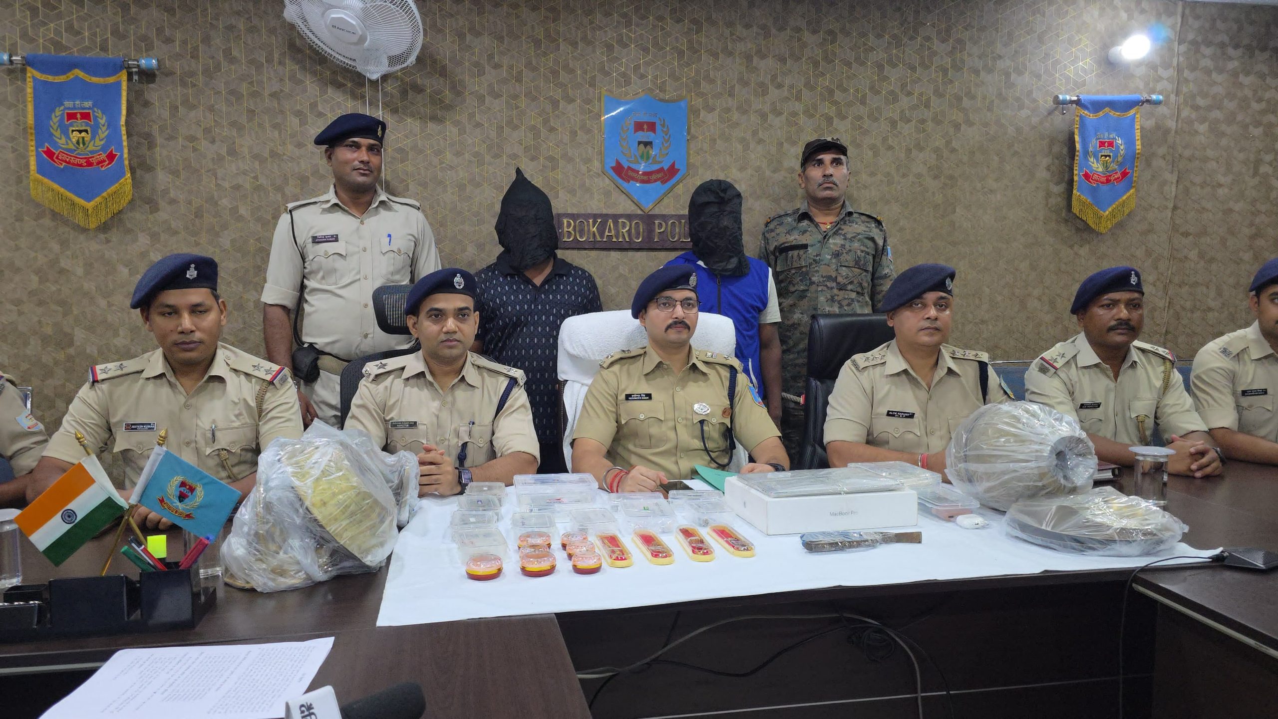 शुक्रवार को घटना की जानकारी देते हुए बोकारो एसपी ने बताया कि बोकारो शहर में लागातार बढ़ रहे गृहभेदन के घटना को रोकने, काण्डों का उद्भेदन एवं अपराधियों की गिरफ्तारी के लिए सिटी डीएसपी के नेतृत्व में एक विशेष छापामारी दल का गठन किया गया था. छापामारी दल अनुसंधान के क्रम में बिनोद सोरेंग उर्फ रघु मुण्डा को रांची के देसवाली टोली से गिरफ्तार किया गया. आरोपी ने अपने अपराध स्वीकारोक्ति बयान में बोकारो शहर में लगातार हो रहे घर में चोरी की घटना में अपना संलिप्तता स्वीकार किया. उसके निशानदेही पर देसवाली टोला अवस्थित उसी के किराये के मकान से चोरी का सामान बरामद किया गया. आरोपी पुलिस को यह भी बताया के चोरी करने एवं चोरी के समान बेचने में झोपडी कॉलनी बोकारो का रहने वाला महेश कुमार उर्फ लल्ला सहयोग करता है एवं चोरी का कई समान अभी भी उसी के पास है. छापामारी टीम माराफारी झोपडी कॉलनी में छापामारी करते हुए महेश कुमार उर्फ लल्ला को गिरफ्तार किया गया. उन्होंने चोरी की घटना में सलिप्त होनी की बात को स्वीकार किया. उसके निशानदेही पर उनके घर से चोरी का समान बरामद किया गया. पुर्व में बिनोद सोरेंग उर्फ रघु मुण्डा सेक्टर 6 एवं बीएससिटी थाना से जेल जा चुके हैं.