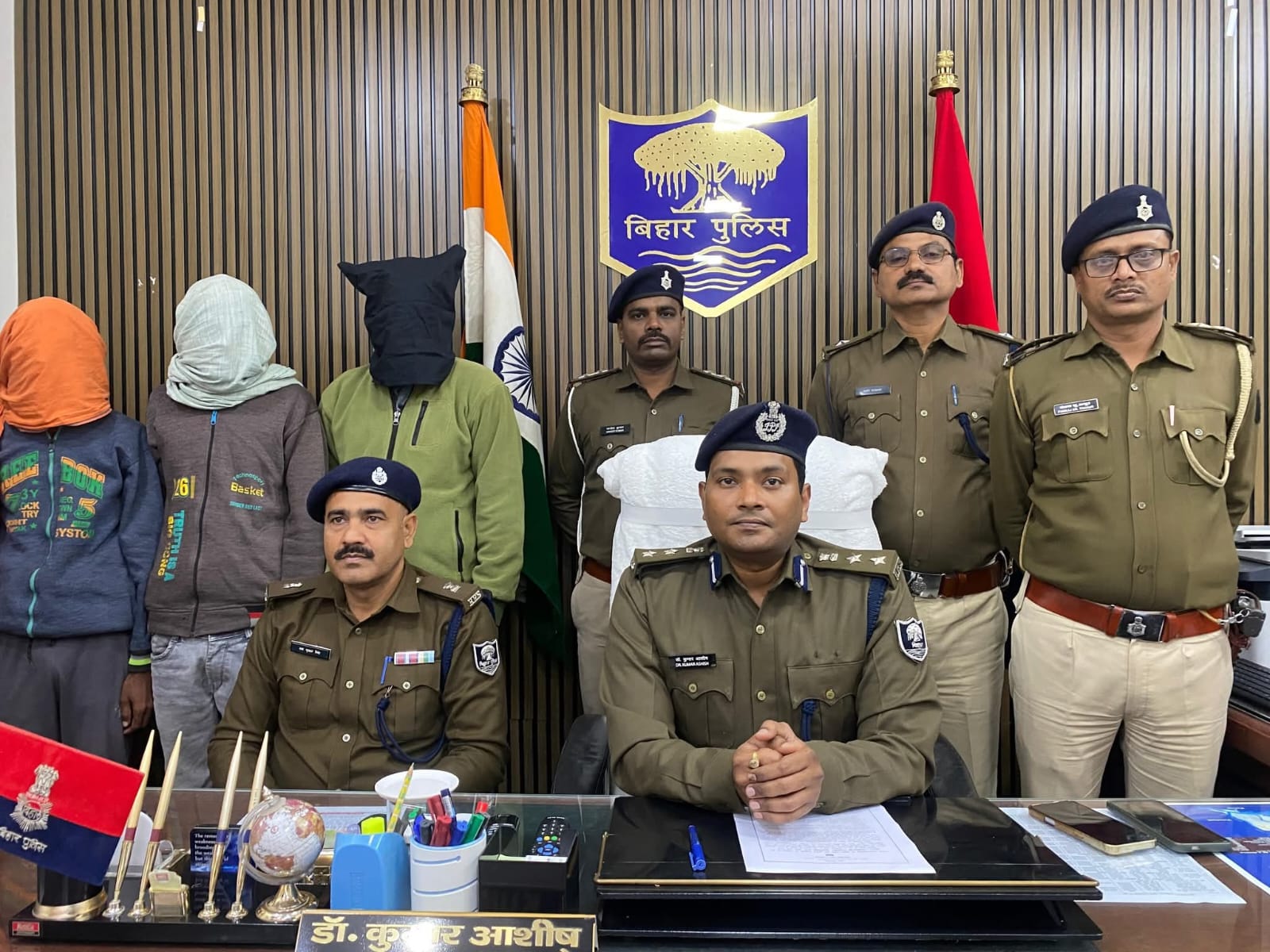 Patna: शराब कारोबारियों से सांठ-गांठ एवं अवैध वसूली के आरोप में दो पुलिस पदाधिकारी समेत तीन आरोपी को सारण के मुफस्सिल थाना पुलिस ने गिरफ्तार कर लिया है. गिरफ्तार आरोपी में मढ़ौरा थाना क्षेत्र के जमानपुर निवासी अपराधी वाल्मीकि कुमार सिंह, प्र०पु०अ०नि० चंद्रभान कुमार एवं प्र०पु०अ०नि० दीपक कुमार ओझा का नाम शामिल है. वही गिरफ्तार अपराधी के पास से 1 पिस्टल, 3 मैग्जीन, 1 गोली, 1 चाकू, 9 लीटर देशी शराब और स्कॉर्पियो पुलिस ने बरामद किया है.