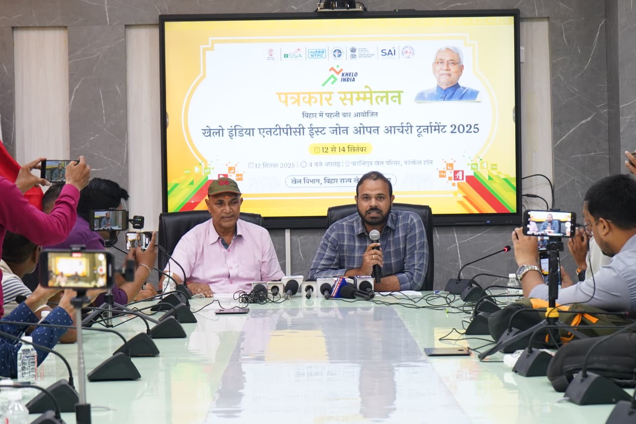 Patna: बिहार में पहली बार जोनल तीरंदाजी प्रतियोगिता’खेलो इंडिया एनटीपीसी जोनल आर्चरी टूर्नामेंट 2025’का आयोजन 12 से 14 सितंबर तक पाटलिपुत्र खेल परिसर में किया जा रहा है. बिहार राज्य खेल प्राधिकरण के महानिदेशक सह मुख्य कार्यकारी अधिकारी रवीन्द्रण शंकरण ,कार्यकारी निदेशक सह सचिव रविंद्र नाथ चौधरी, उप निदेशक हिमांशु सिंह, क्रीड़ा कार्यपालक आनंदी कुमार और बिहार आर्चरी एसोसिएशन के सचिव मनोज कुमार की उपस्थिति में आयोजित एक संवाददाता सम्मेलन में इस बात की जानकारी दी गई.