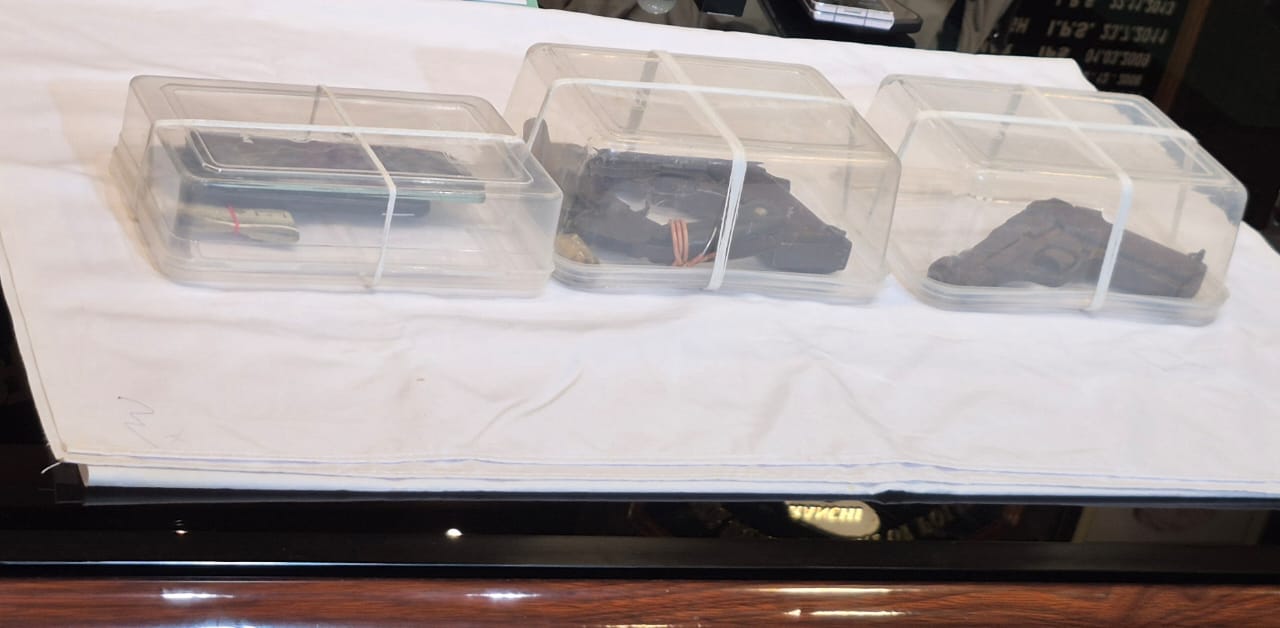 Ranchi: रांची के सुखदेवनगर थाना पुलिस ने मेड इन यूएसए पिस्टल समेत तीन हथियार के साथ दो आरोपी पहाड़ी मंदिर के पास पकड़ा है. गिरफ्तार आरोपी में अनिल गाड़ी और आकाश मिर्धा का नाम शामिल है. दोनो आरोपी कांके थाना क्षेत्र के कोंगे जयपुर का रहने वाला है. आरोपी के निशानदेही पर दो पिस्टल, एक देशी कट्टा, 4 गोली, 7200 रुपया नगद और बाइक (JH01ET1693) पुलिस ने बरामद किया है.
