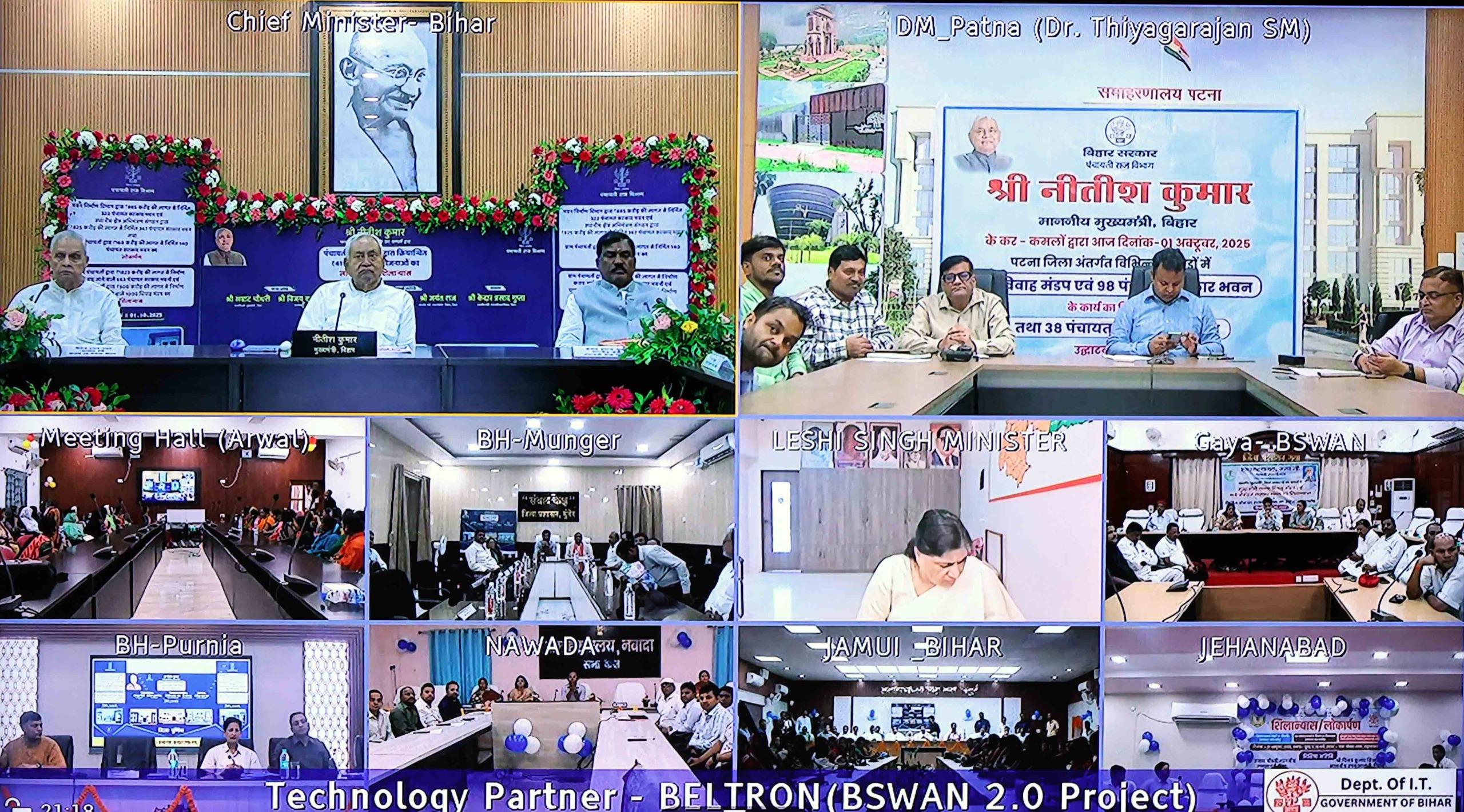 कार्यक्रम में पंचायती राज विभाग के अन्तर्गत ग्राम पंचायतों द्वारा 1823 करोड़ रूपये त से निर्माण कराये जाने वाले 663 पंचायत सरकार भवन तथा मुख्यमंत्री कन्या विवाह मंडप योजनान्तर्गत ग्राम पंचायतों द्वारा 500 करोड़ रूपये की लागत से निर्माण कराये ने 1000 विवाह मंडप का शिलान्यास किया गया. मुख्यमंत्री कन्या विवाह मंडप योजना योजनान्तर्गत बिहार के सभी ग्राम पंचायतों में आधुनिक विवाह भवन (विवाह मंडप) का निर्माण किया जा रहा है, जिससे गरीब परिवारों को अपनी बेटियों की शादी के लिये एक नक और सुविधाजनक स्थान मिलेगा और उन्हें शादी के खर्चों में राहत मिलेगी.