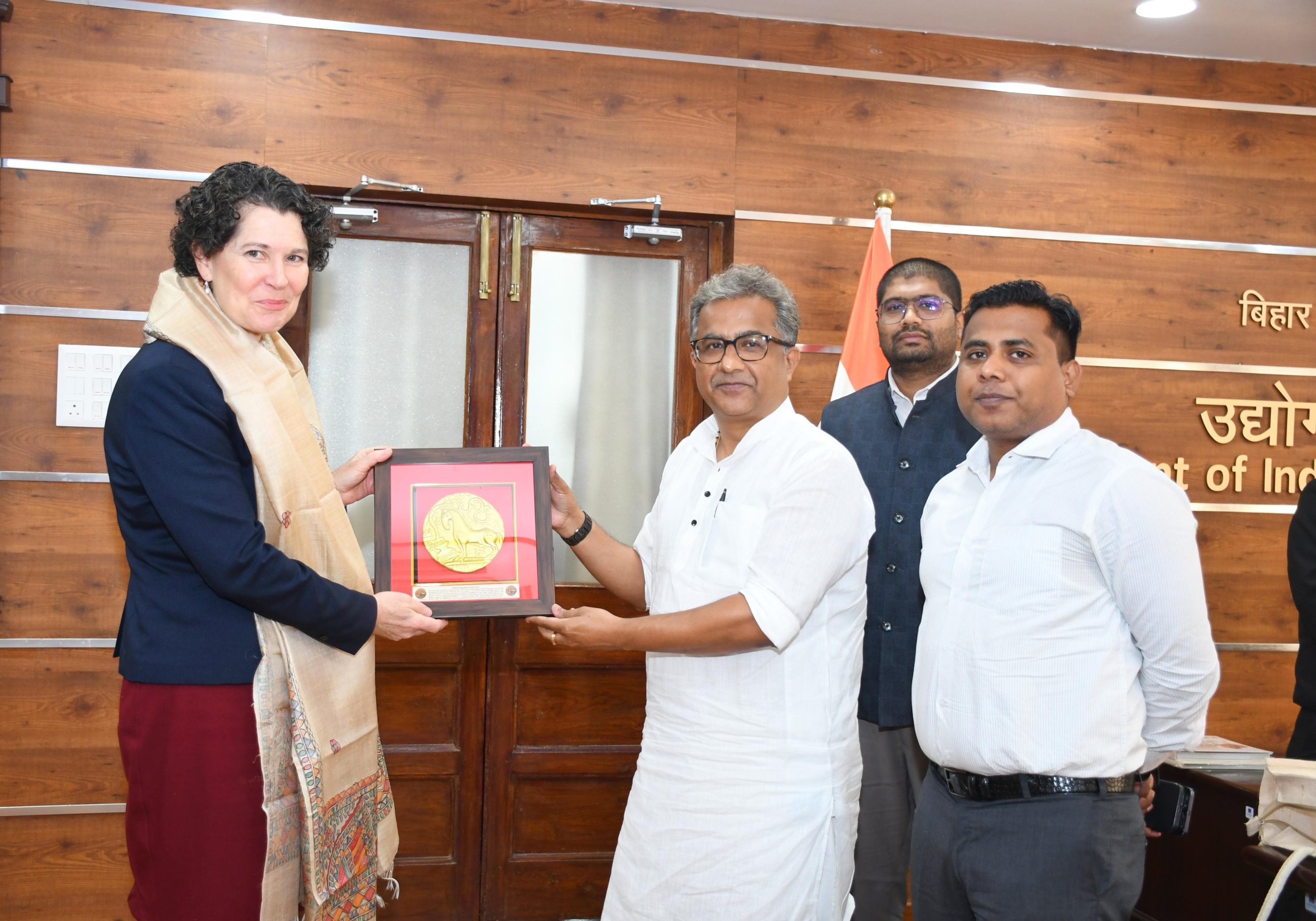 Patna: संयुक्त राज्य अमेरिका के वाणिज्य दूतावास की महावाणिज्यदूत कैथी जाइल्स डियाज़ ने सोमवार को बिहार सरकार के उद्योग मंत्री नीतीश मिश्रा से औपचारिक भेंट की. इस यात्रा के दौरान अमेरिकी वाणिज्य दूतावास के प्रतिनिधि ने बिहार के वरिष्ठ सरकारी अधिकारियों से मुलाकात की और औद्योगिक विकास व निवेश संभावनाओं पर चर्चा की. बिहार में औद्योगिक क्षेत्रों तथा अमेरिकी कंपनियों के लिए व्यावसायिक अवसरों पर विचार-विमर्श किया.